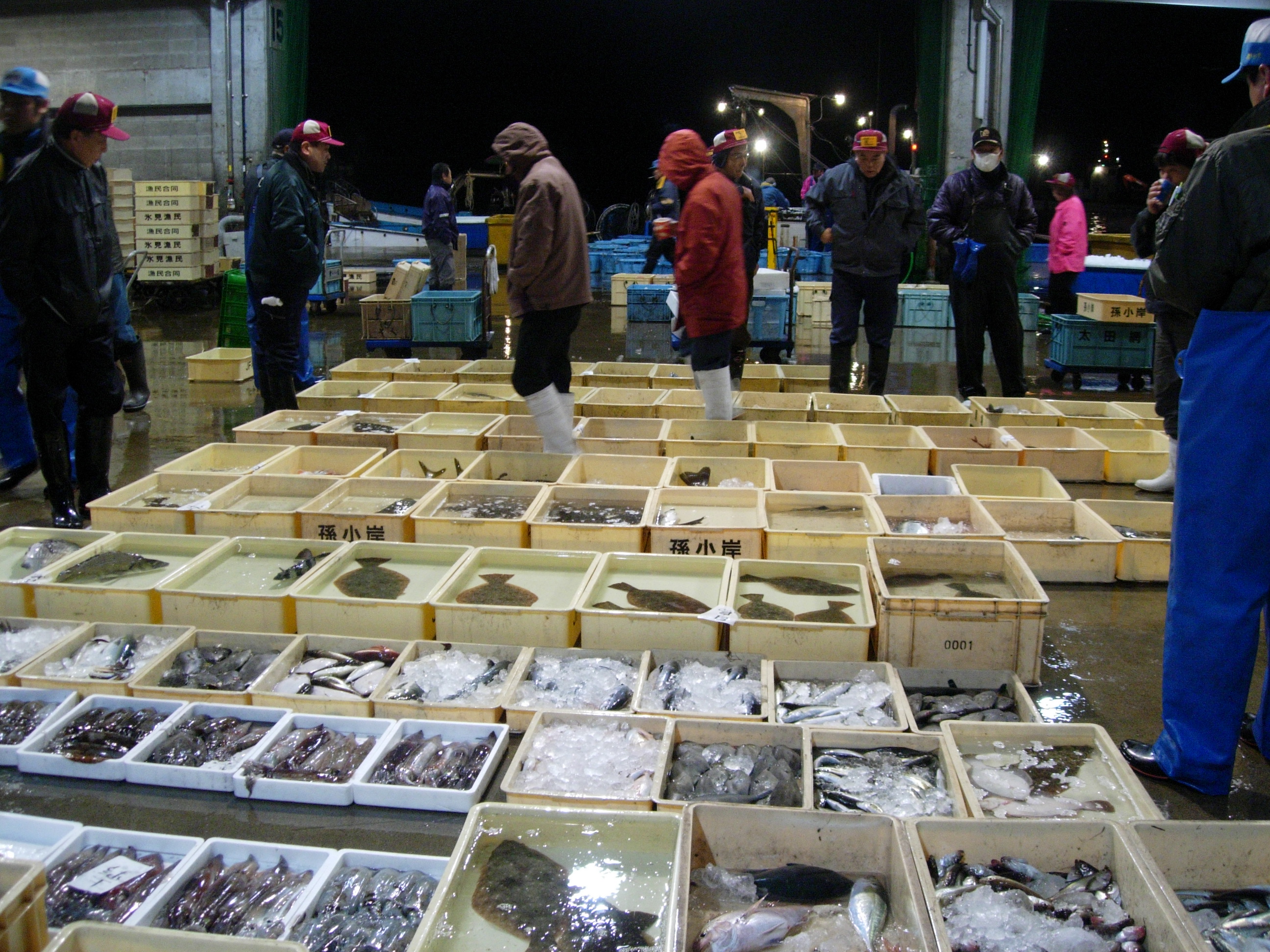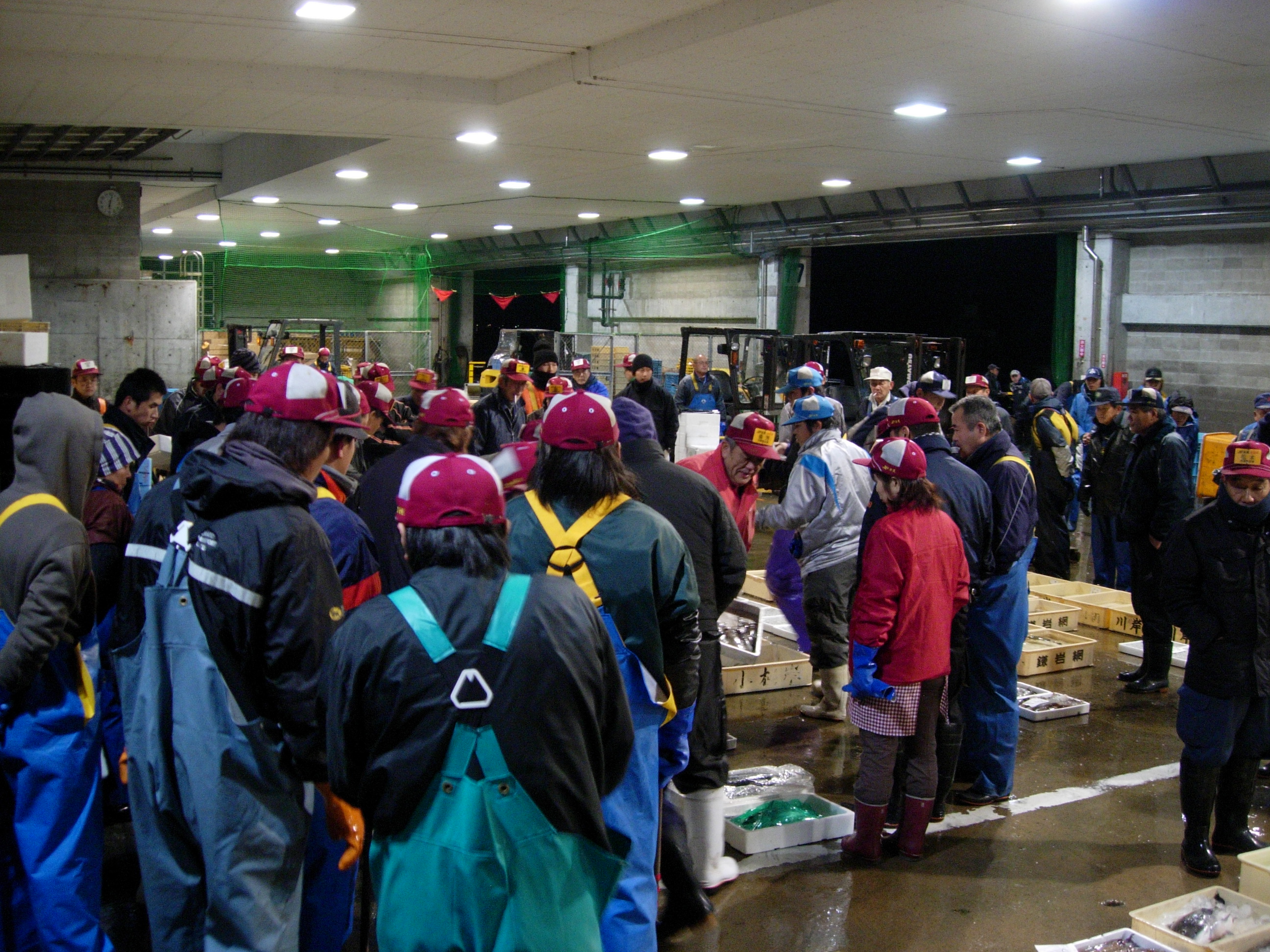 Unlike Tsukiji Market, where most of the seafood comes in by trucks, and even airplanes via Narita and Haneda, most of the fish at the Himi auction were unloaded off of boats and moved just a few feet onto the auction floor.