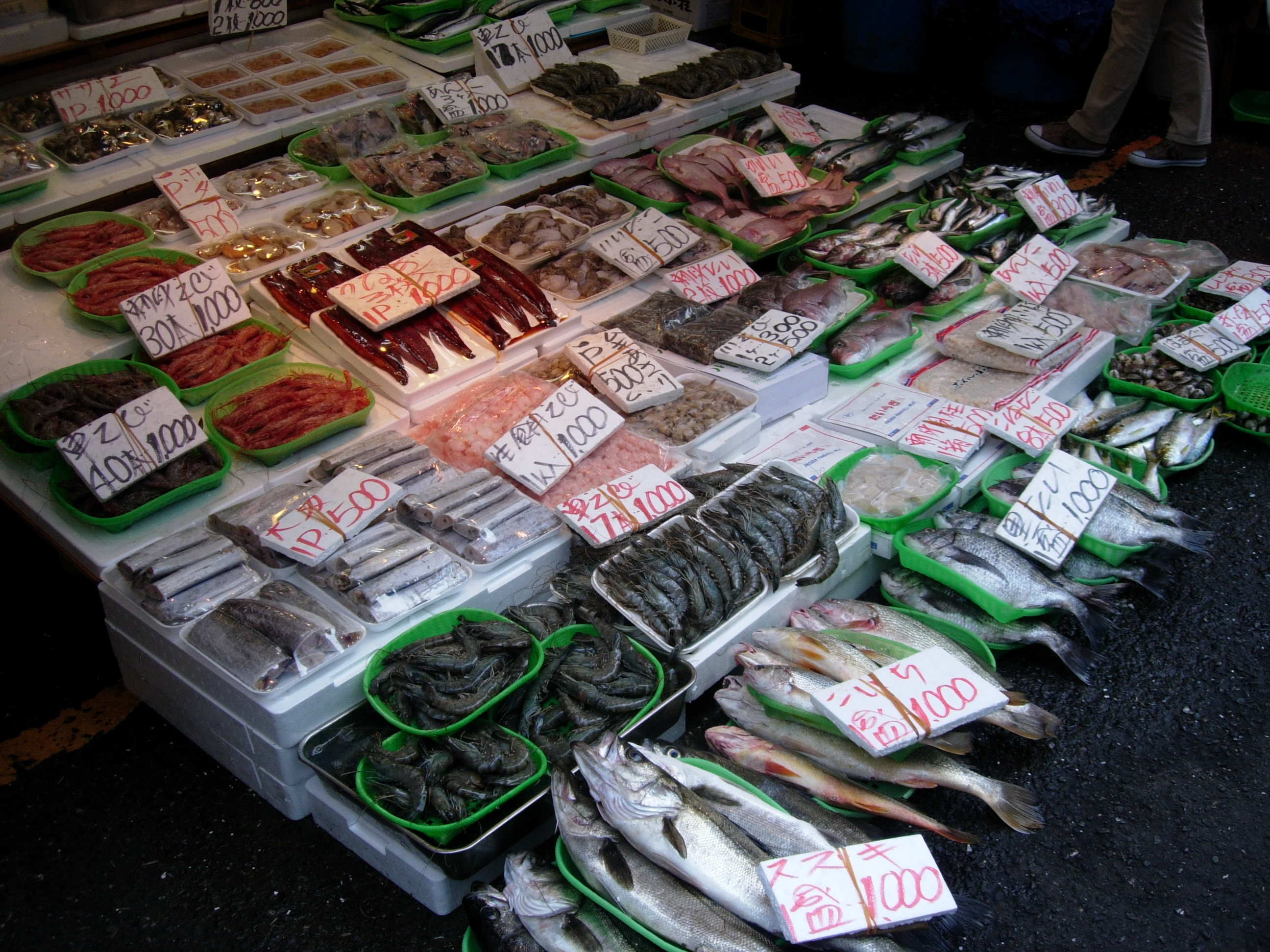 The fishmongers call out in huffy voices offering discounts and bargains. “Omake” means that they are offering great discounts and may even barter with you, or they may call out “sen yen” (1000 yen) and point to a tray loaded down with seafood. And while negotiating prices is rarely done in Japan, it is done here. You will find a bit of everything from seafood, fruits, vegetables, and dried goods.