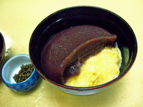 Just off of the Nakamise Dori the corner shop is easy to recognize from the red paper umbrella and benches in front of the shop. Umezono in Asakusa, opened in 1854, has a strong following for anmitsu, oshiruko, soup-like sweets including azuki an paste, fruits, kanten and mochi dango. Their signature dish, awa zenzai, one of the most popular Asakusa sweets, warms up the body on cold days. The awa (a small grain) is cooked slowly steamed until tender and presented in a lacquer bowl with some sweet azuki paste. The menu has a full selection of traditional sweets to enjoy inside the café and several of their popular sweets are packaged to go like dorayaki, anmitsu, and mitsumame.
