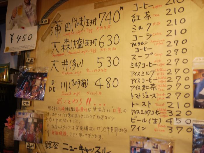 An old style curry shop, in an old building in a very modern part of town, catches your eye. The shop opened in Showa 21 (1946) and it looks like nothing in the shop has changed since then. New Castle has long been famous for its curry rice, which can be topped with a sunny-side up egg. The menu items are named after train stations on the Keihin-Tohoku train line including Kamata and Shinagawa, the difference being the portion size and if it is topped with an egg or not.