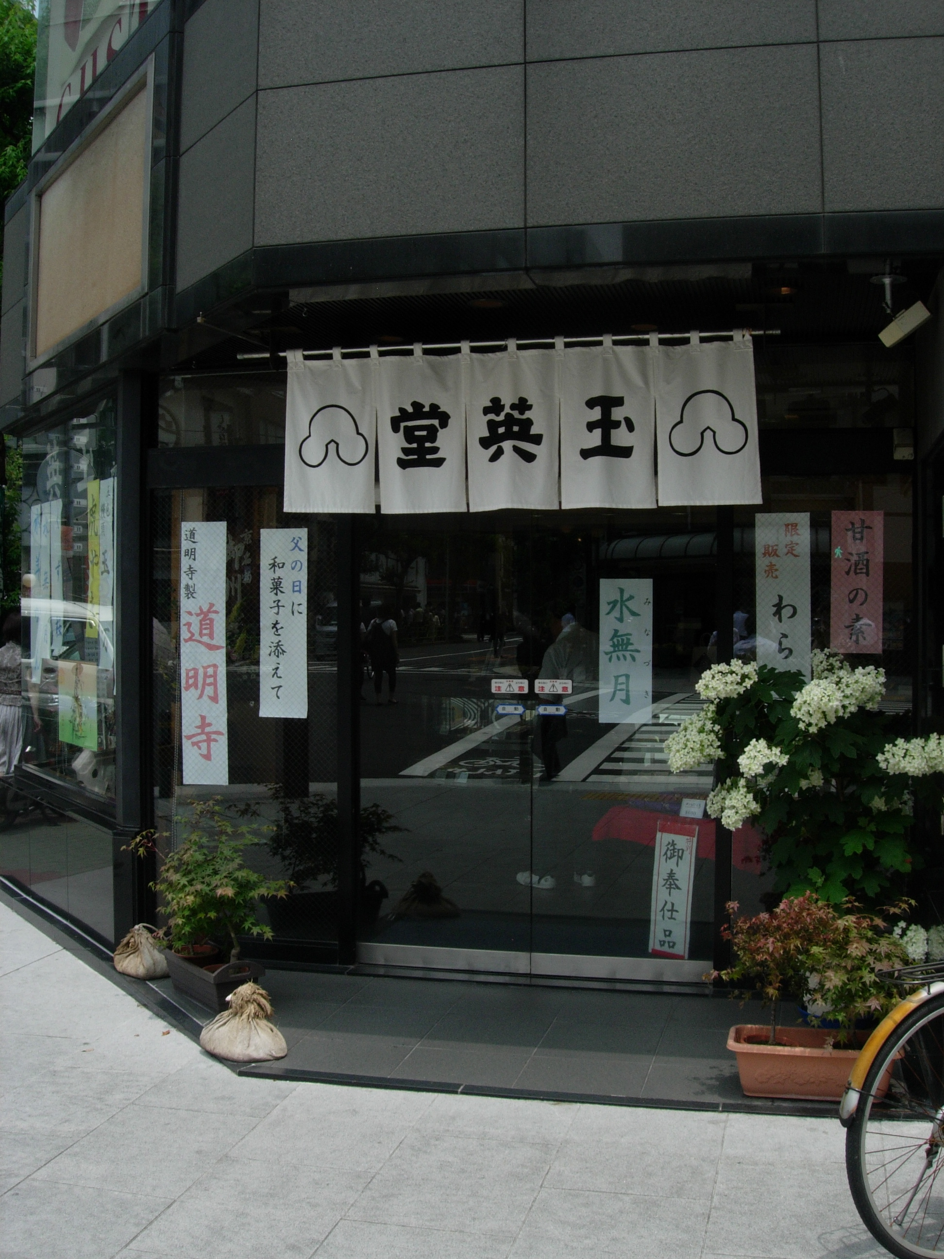Commanding the corner, this branch of a Kyoto shop dates back 400 years. Gyokueidou is famous for two sweets, its dorayaki of pancakes stuffed with azuki paste and gyokuman. The gyokuman is a large sweet manju that is several layers around a chestnut of azuki paste, pink an, white an, and the manju cake dough, made from sticky yamaimo that encompasses it all.