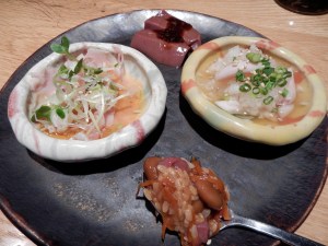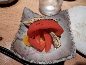 The shop has an outstanding saké and shochu list. Some good saké that is not on the menu as well, so be sure to ask your server if there are any off the list that they have. Some that we enjoyed this evening included a saké from Aizu Wakamatsu in Fukushima, Kikuhime from Ishikawa, and Kikuyoi from Shizuoka.