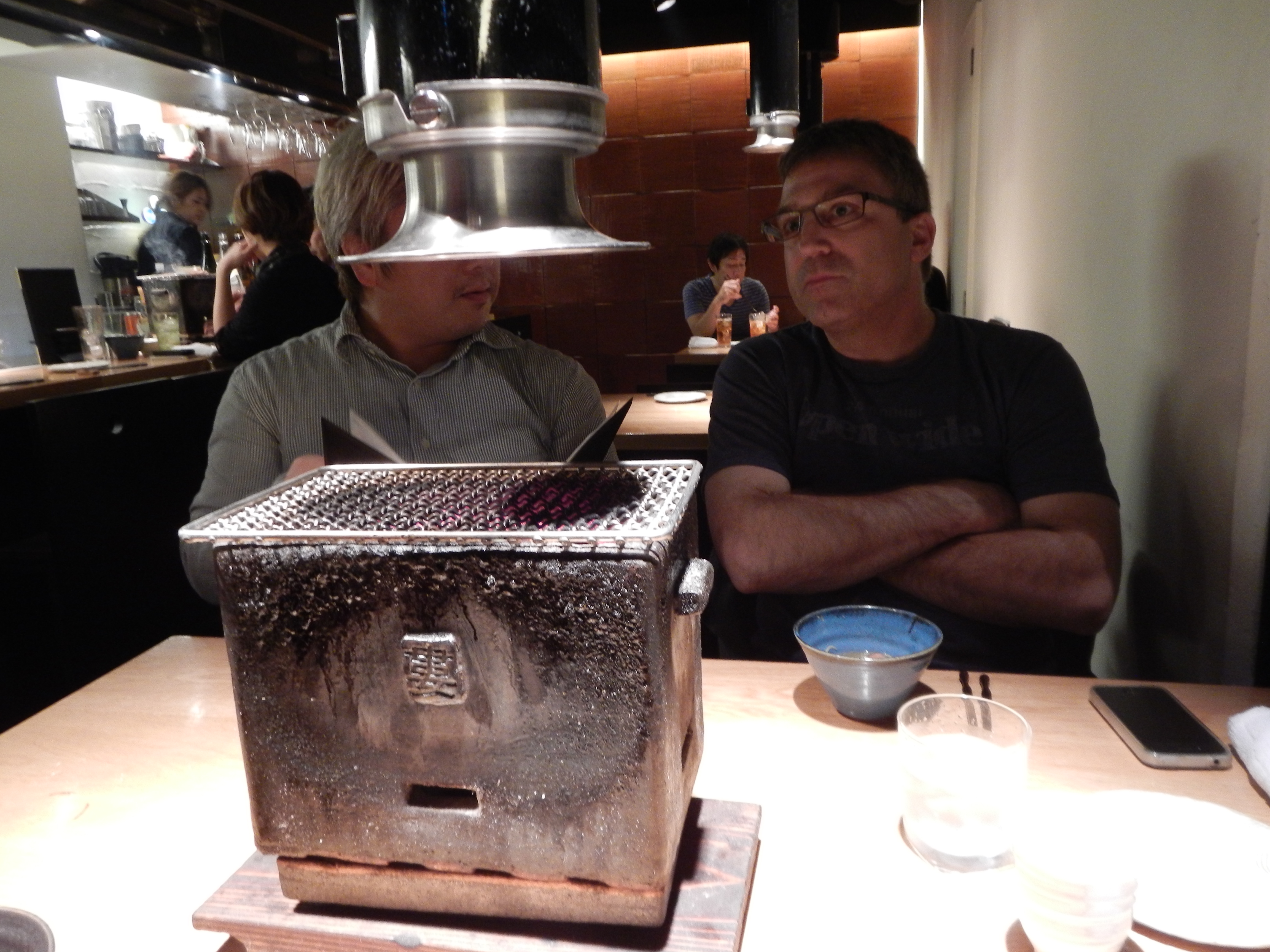 At this point the staff pull down the exhaust vent from the ceiling and bring a charcoal grill to the table. Maybe you recognize Japan’s most famous non-Japanese ramen chef in the photo?