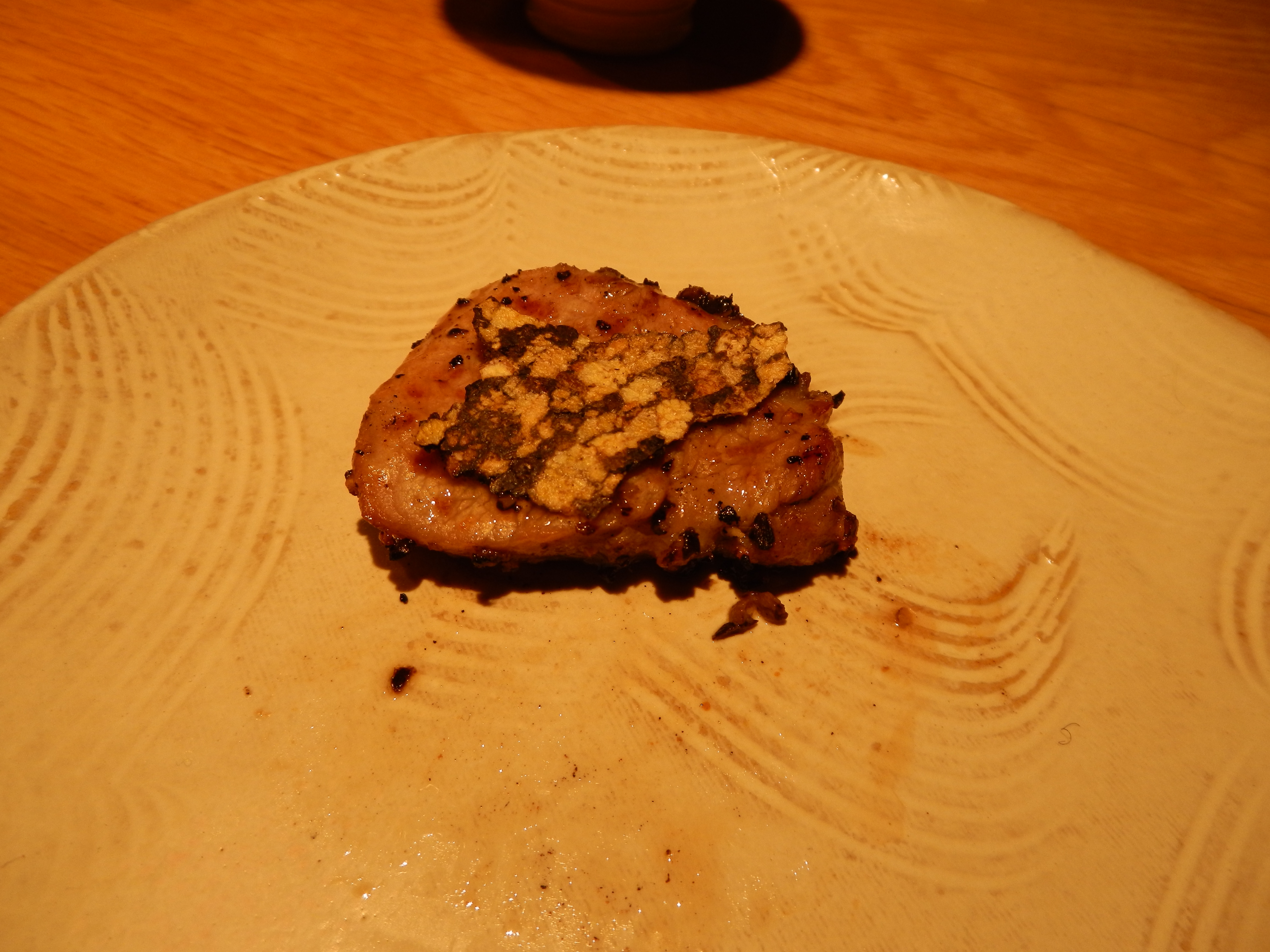 This was also a new ingredient. Dried peppercorn pressed until paper thin. Leathery texture and a peppery bite. Would love this with a steak.