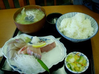 Kanburi sashimi breakfast at the restaurant on the 2nd floor of the wholesale market.