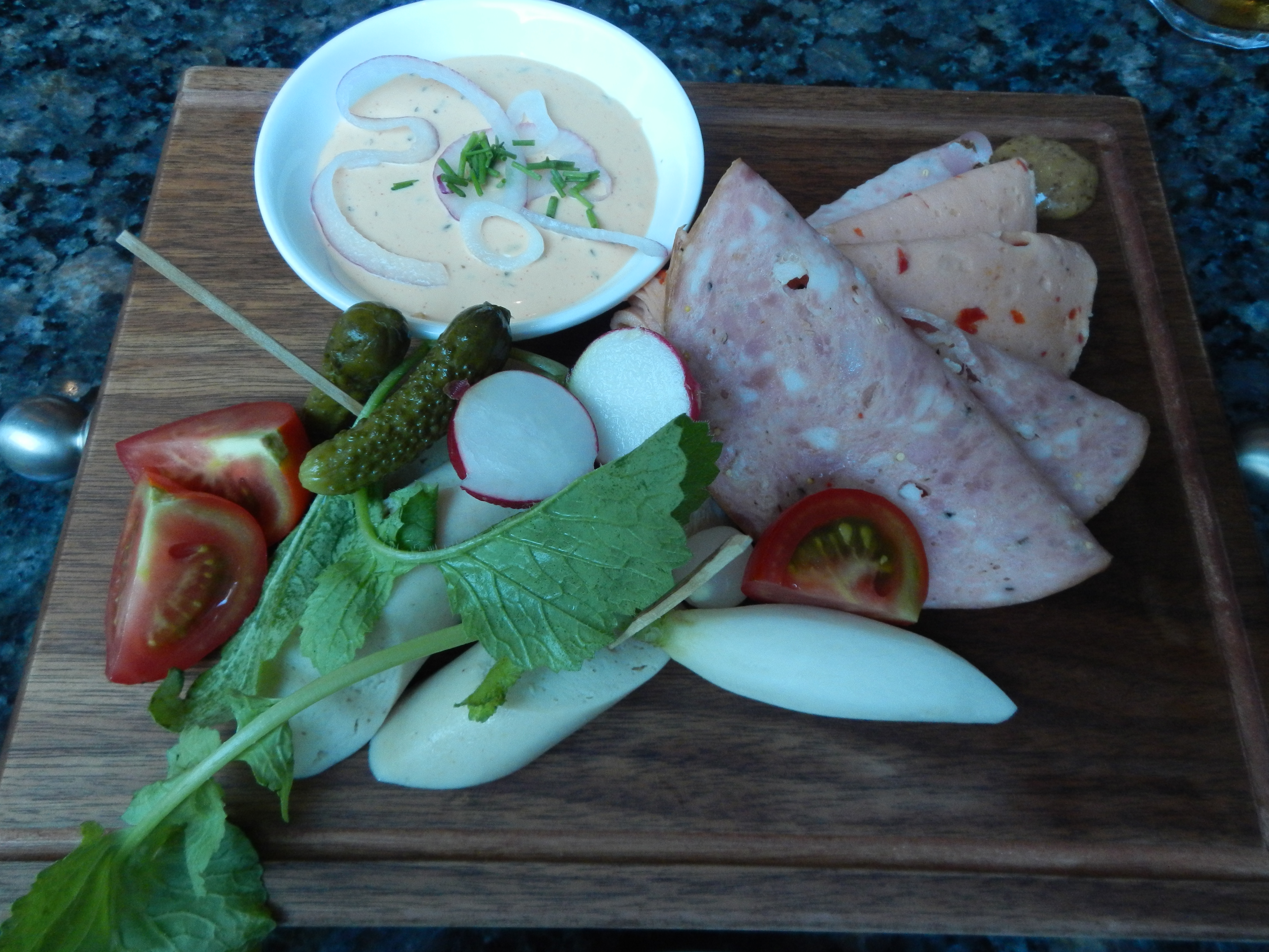 The food that is served is a generous serving of German meats of Weiswurst white sausage, Bierwurst, Paprika Lyoner, and a pork belly Rouladen. There is a sweet mustard as well as a great sauce called obazda. I spoke with the Executive Sous Chef, Yoneda-san, who said that the traditional Bavarian sauce is made with Camembert cheese. It’s something I will try to make at home.