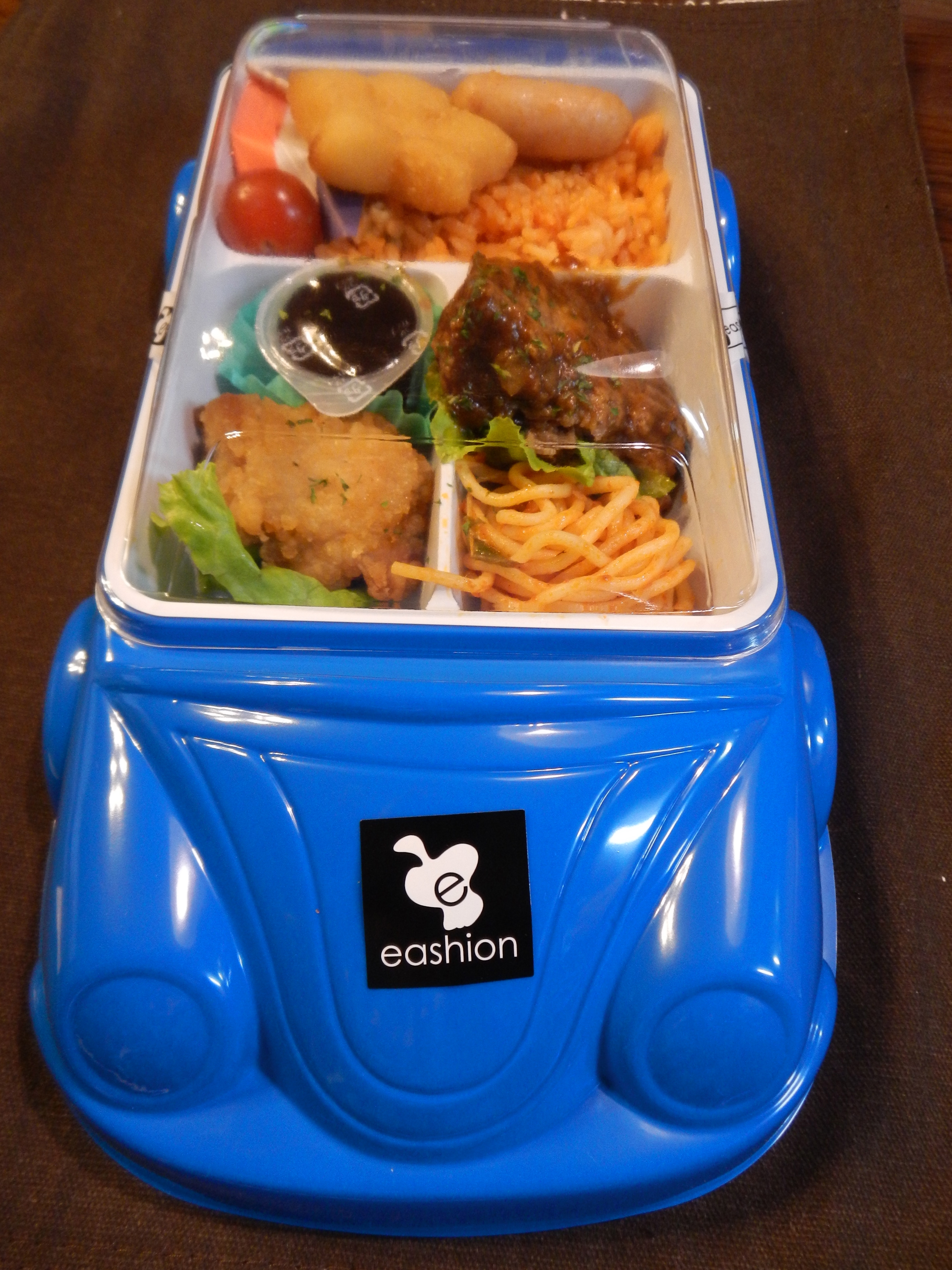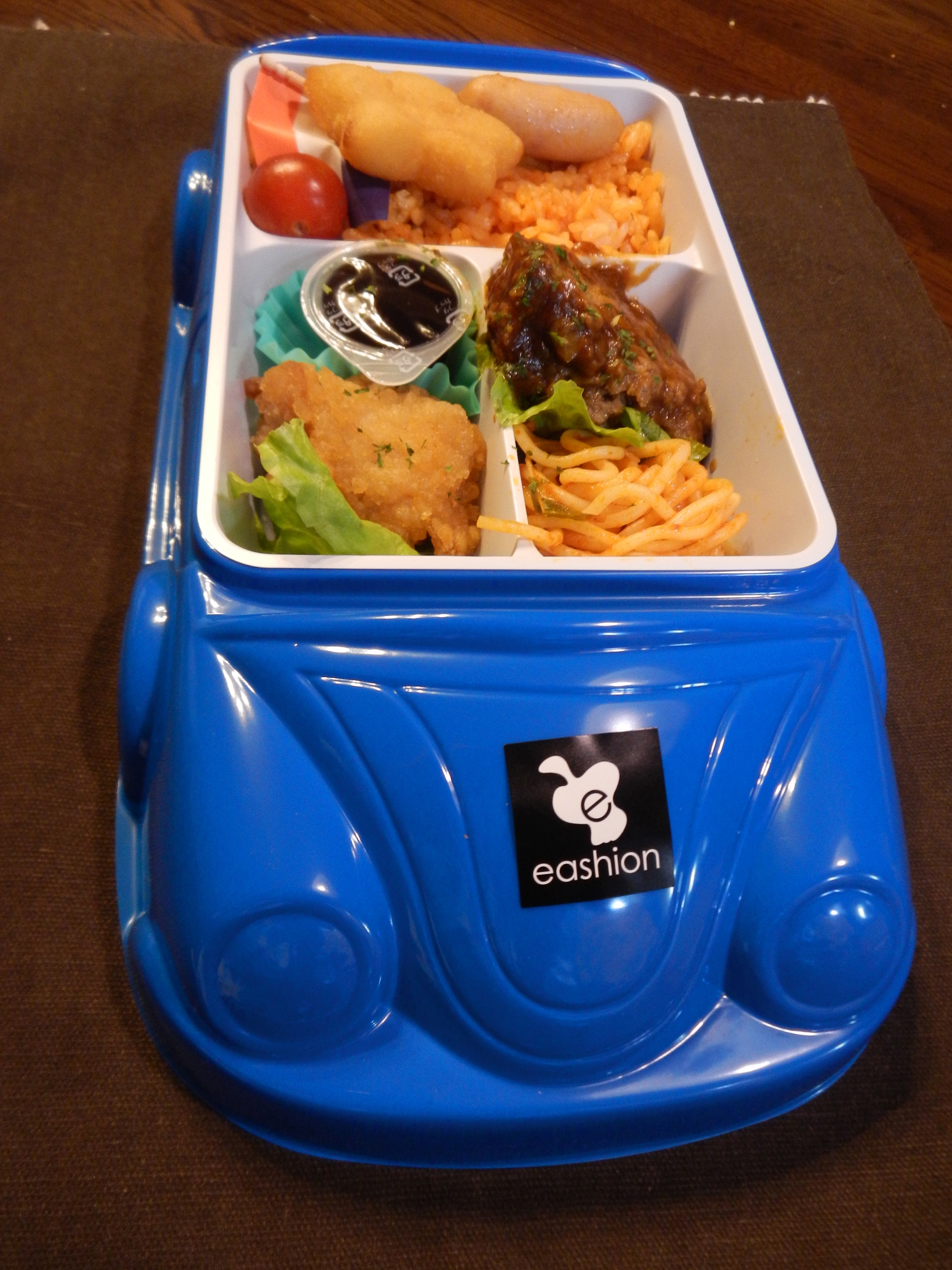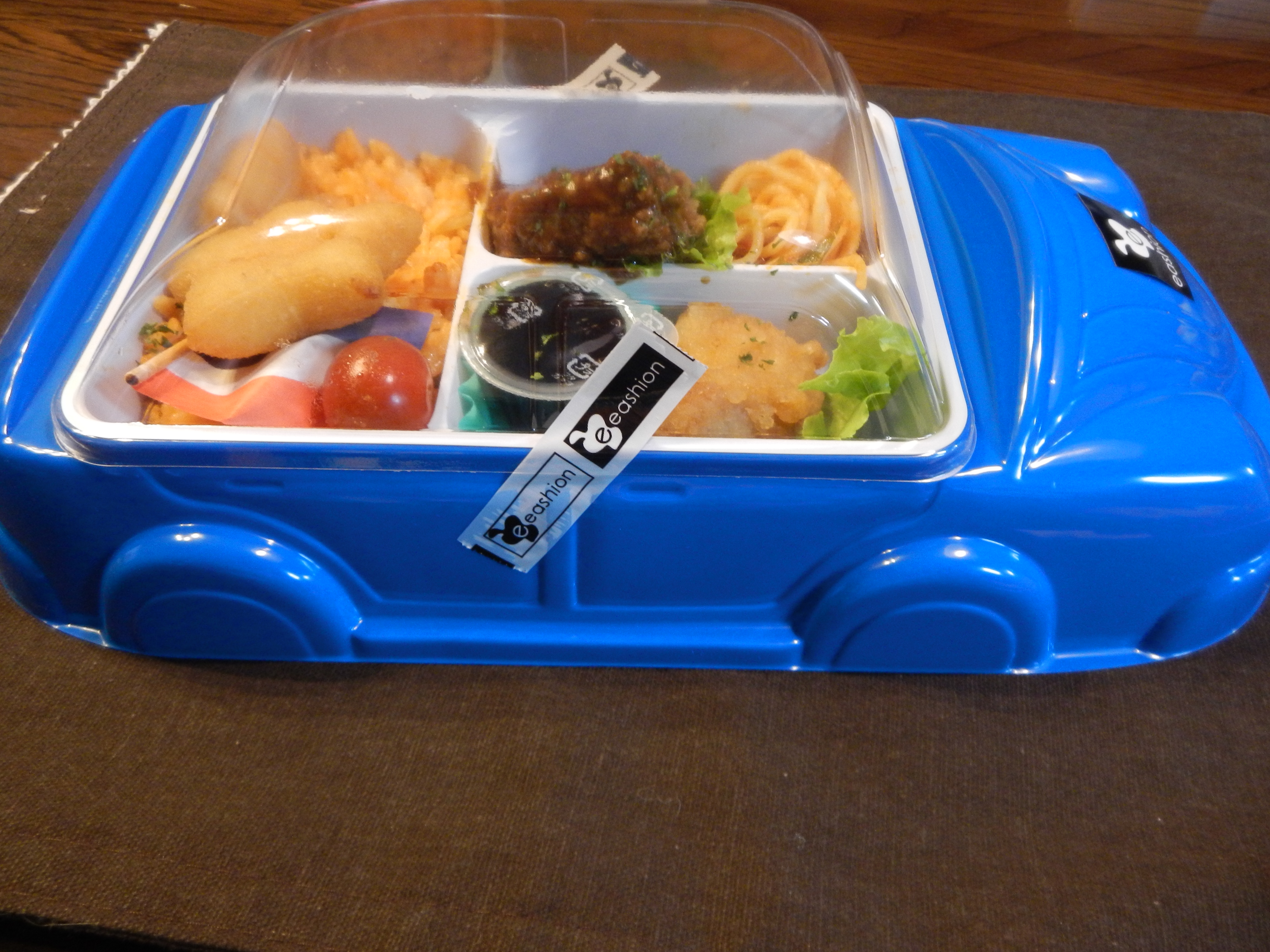 If you are traveling with your kids through Tokyo station on summer holidays, look out for fun kids’ bentō. I also saw a Hello Kitty bentō and a panda bentō. Some bentō, like this one, can be recycled. We just wash the removable white partitioned plastic interior and the blue car exterior.