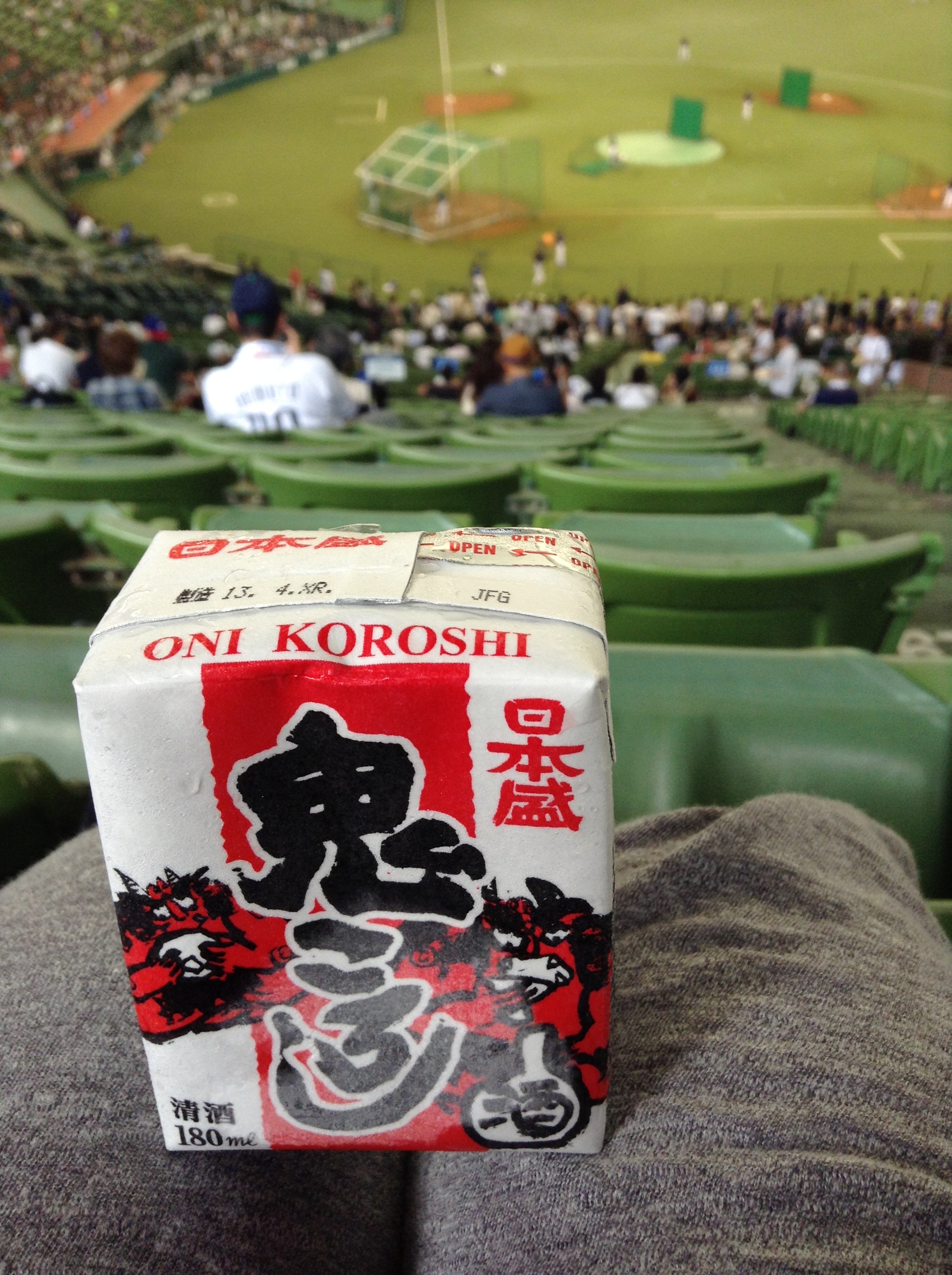 We’ve been to a few baseball games this summer. One thing that I find amazing is that you can bring in your own food and beverages, even alcohol. However, the stadiums are very strict about not allowing glass or cans. So, as long as you can find your saké (or wine) in soft packaging, you are free to bring it in.