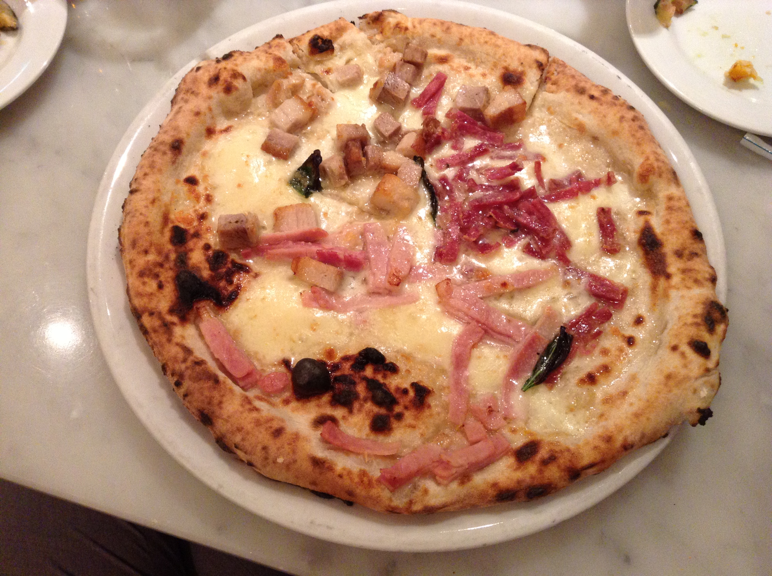 I was with our son this day so took the meat pie. It’s a large pizza and one should go on an empty stomach. The crust was thick on the edges and thin in the middle. For me it’s a great pie. The dough is chewy, toppings are generous, and best of all, it’s close to home.