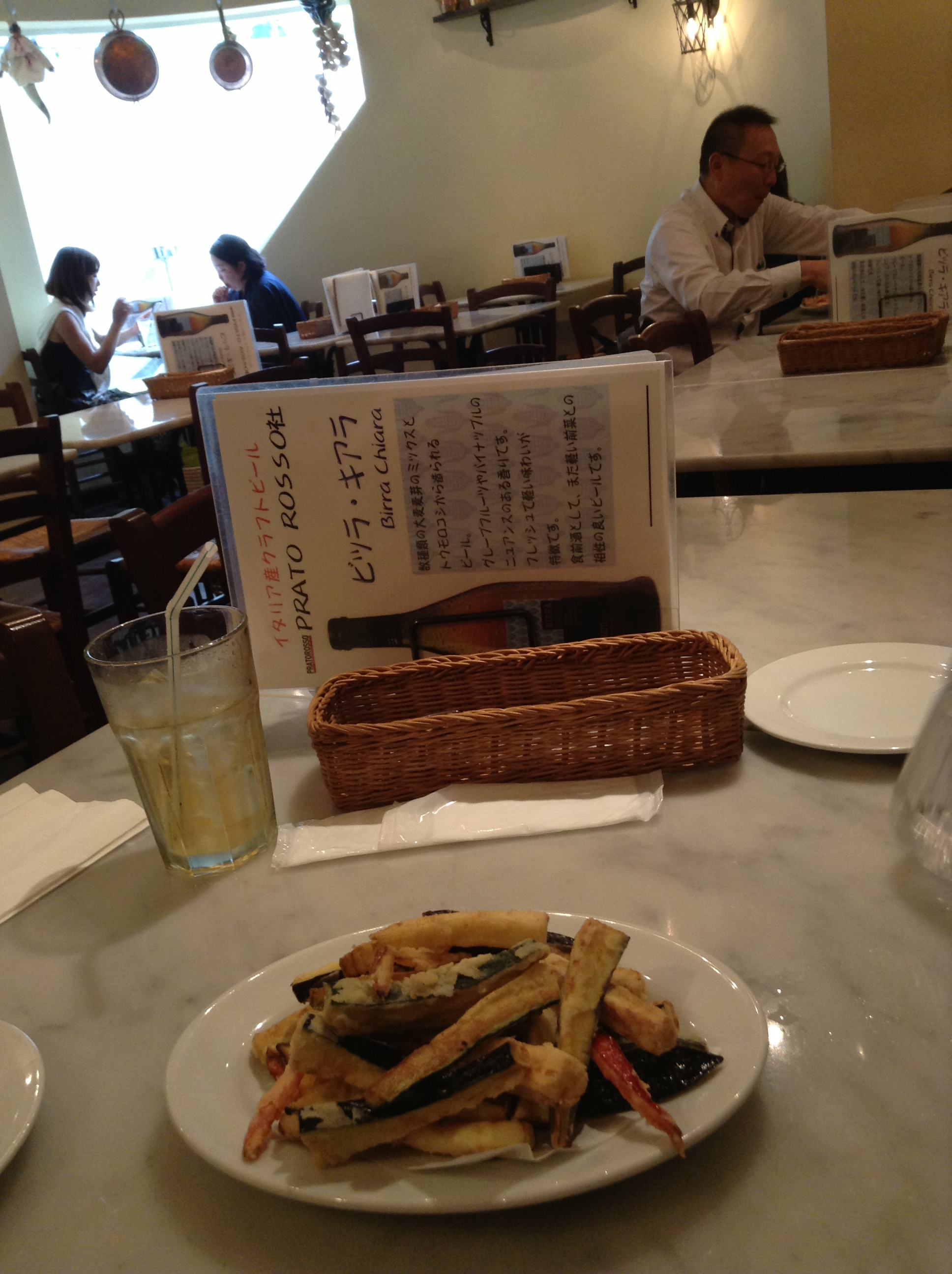 The fritto misto was of zucchini, bell peppers, and sweet potatoes. Hot out of the oil and our serving of vegetables for this lunch.