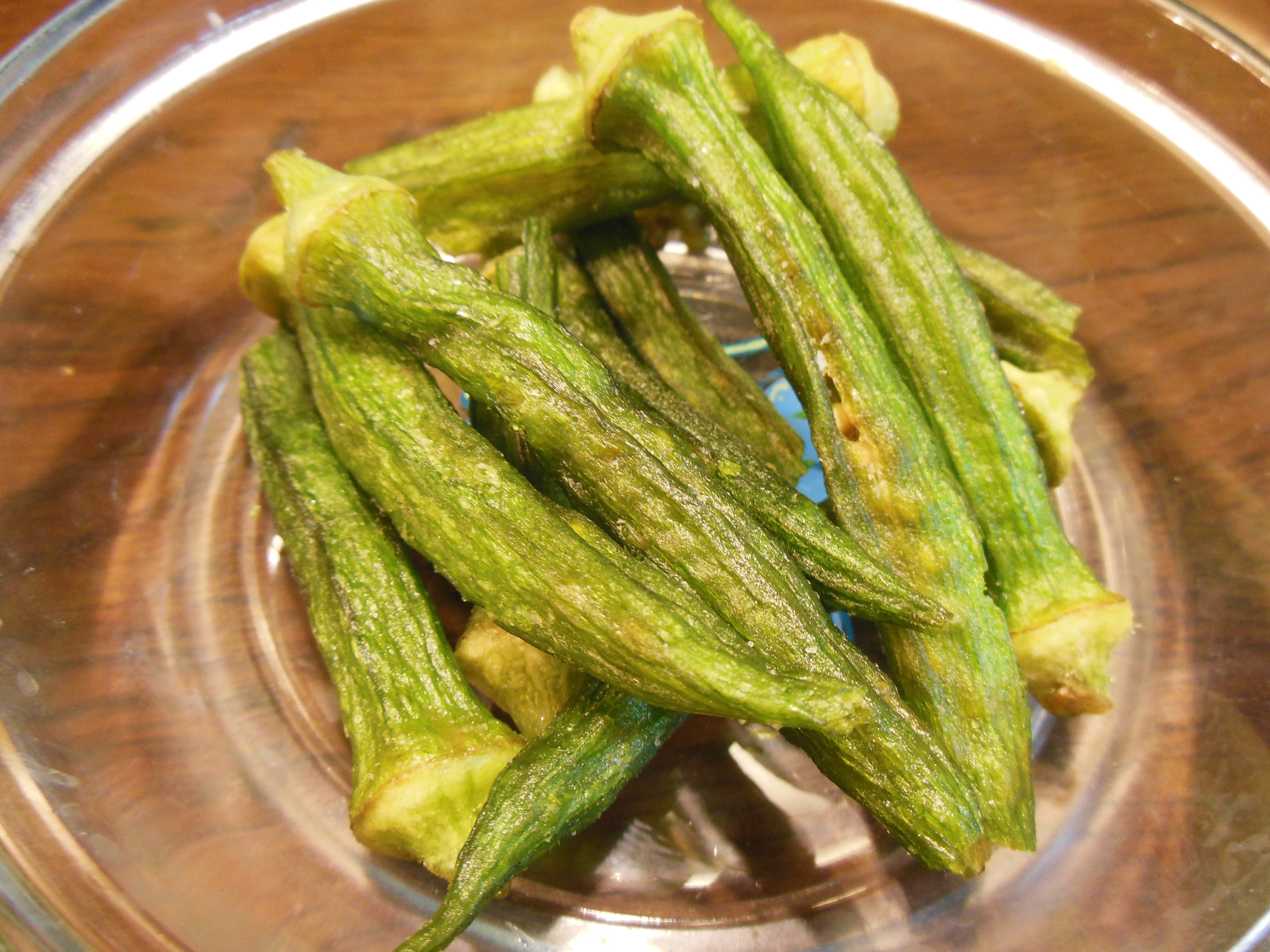 When it comes to crispy snacks in Japan, I tend to pick up Calbee potato chips. Calbee changes up its line-up frequently and it gives me a good excuse to buy something to snack on. When we saw these okra crisps at our local Tomizawa Shōten shop we were so curious. What would okra, which is so slippery and slimy when cooked, be like when fried up? It was a hit in our house. We went back to the store and bought several more packs the next day. They are crispy, the seeds inside the pods are crunchy, and it is well seasoned with salt. Great with beer, sake, or shōchū. Something so good for you must still be good for you, even when deep-fried, right?