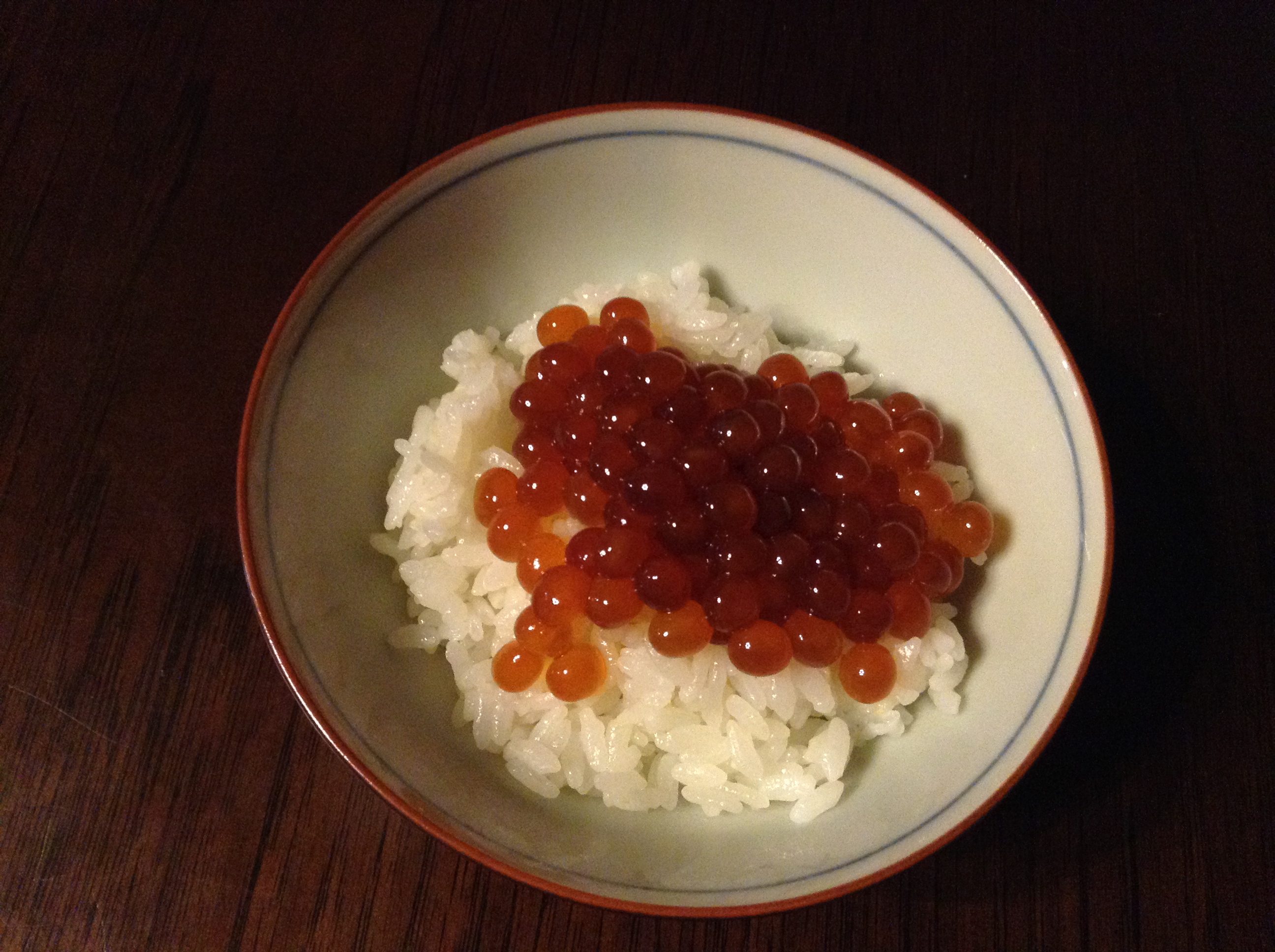 It is shirako – and yes, we love the salmon roe (ikura). I bought it thinking it might be herring roe (which I don’t seem to be able to find here), but my translation app says its salmon milt from Hokkaido!