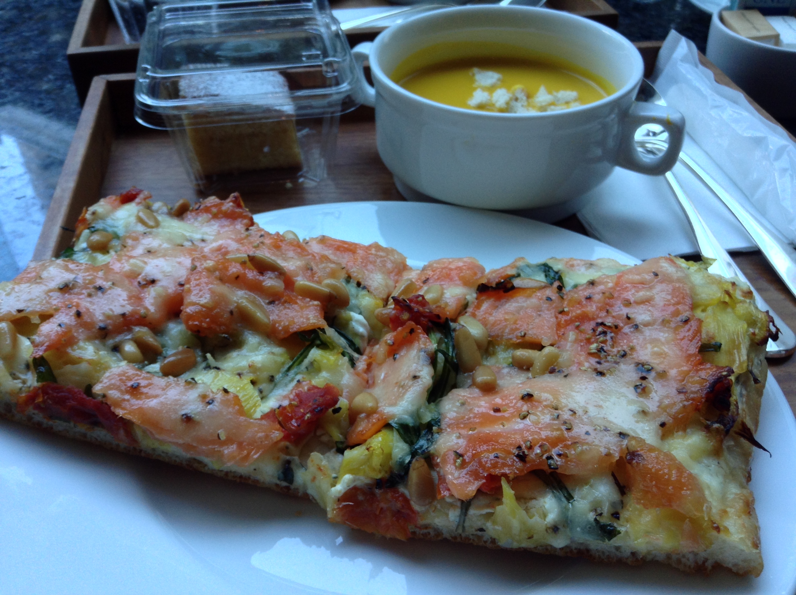 The focaccia was irresistible. This one with smoked salmon, artichokes, and pine nuts is generous with the toppings.