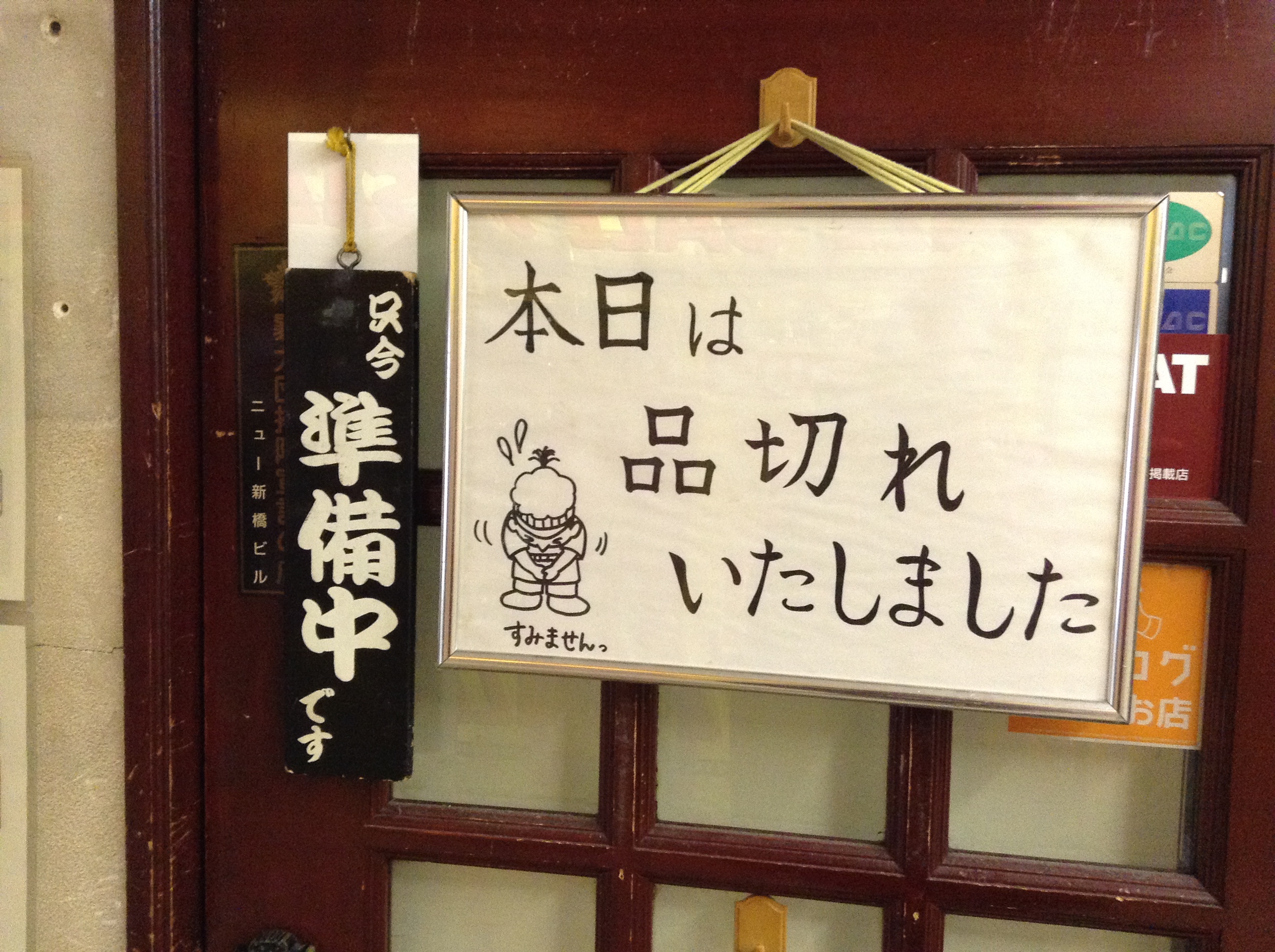 The chef, Kenichi Okada, trained in French cuisine. He has created such a following for this dish that he is only open for a few hours for lunch only on weekdays. It is very popular and there is usually a line. I happened to come just before they closed at 2:00 p.m. and even then the restaurant was filled with salarymen in suits. I overheard one of them say to Mrs. Okada that the four of them have been trying to come to the restaurant over the years and finally got in today. She apologized for the inconvenience. How Japanese. The restaurant is scheduled to stay open until 2:00 p.m., but if they do sell out they will close early. This is the sign on the door if you have missed out.