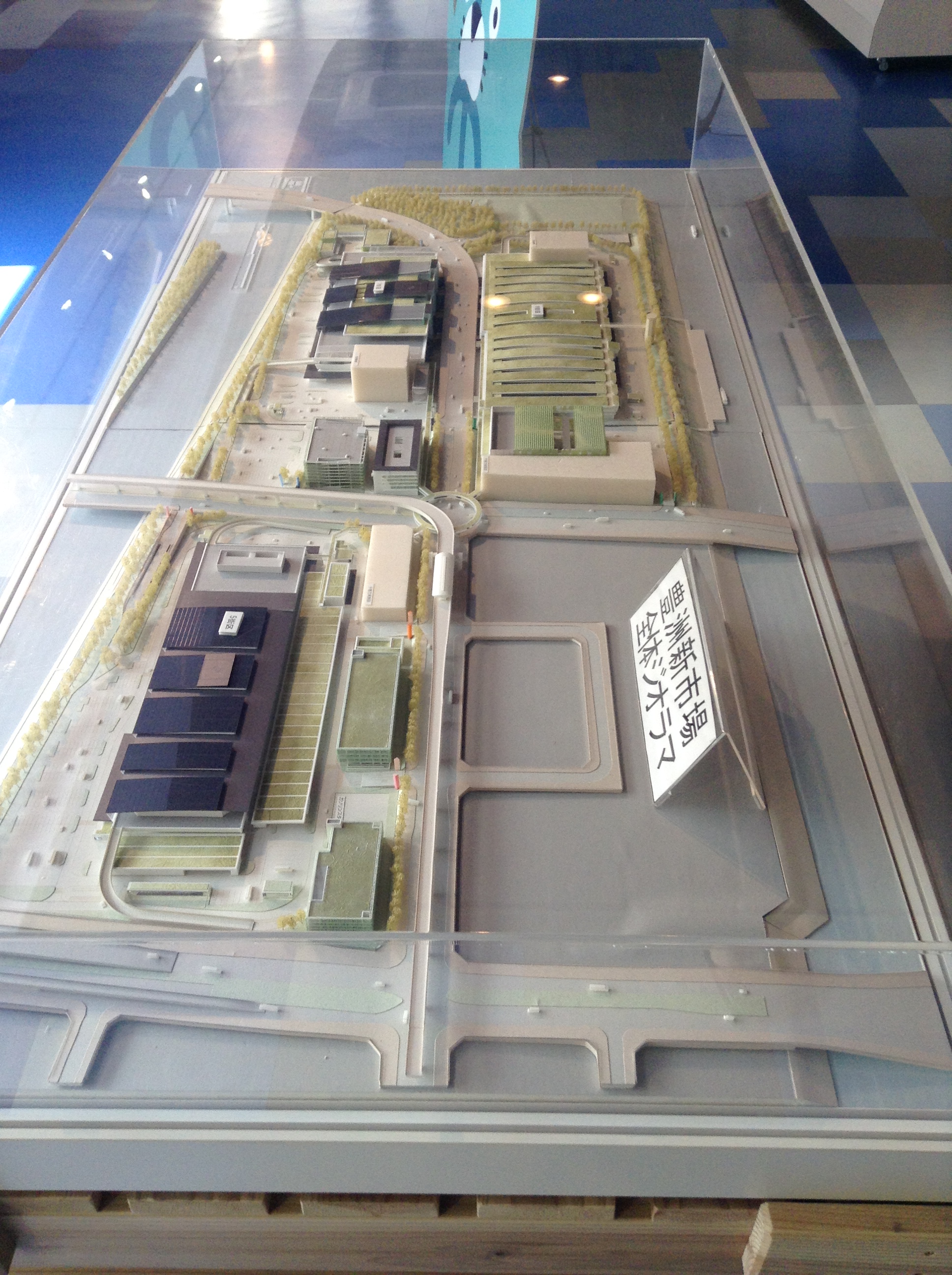 What is not shown at the museum, but what has been shown on television is that a hotel will also be built here. There will also be a hot springs at the hotel with an outdoor onsen on the rooftop that will overlook Tokyo Bay. It is slightly more convenient for the delivery trucks to access, especially for those that make the trip to Narita airport. This PDF has a map of the new facility compared to the current location.