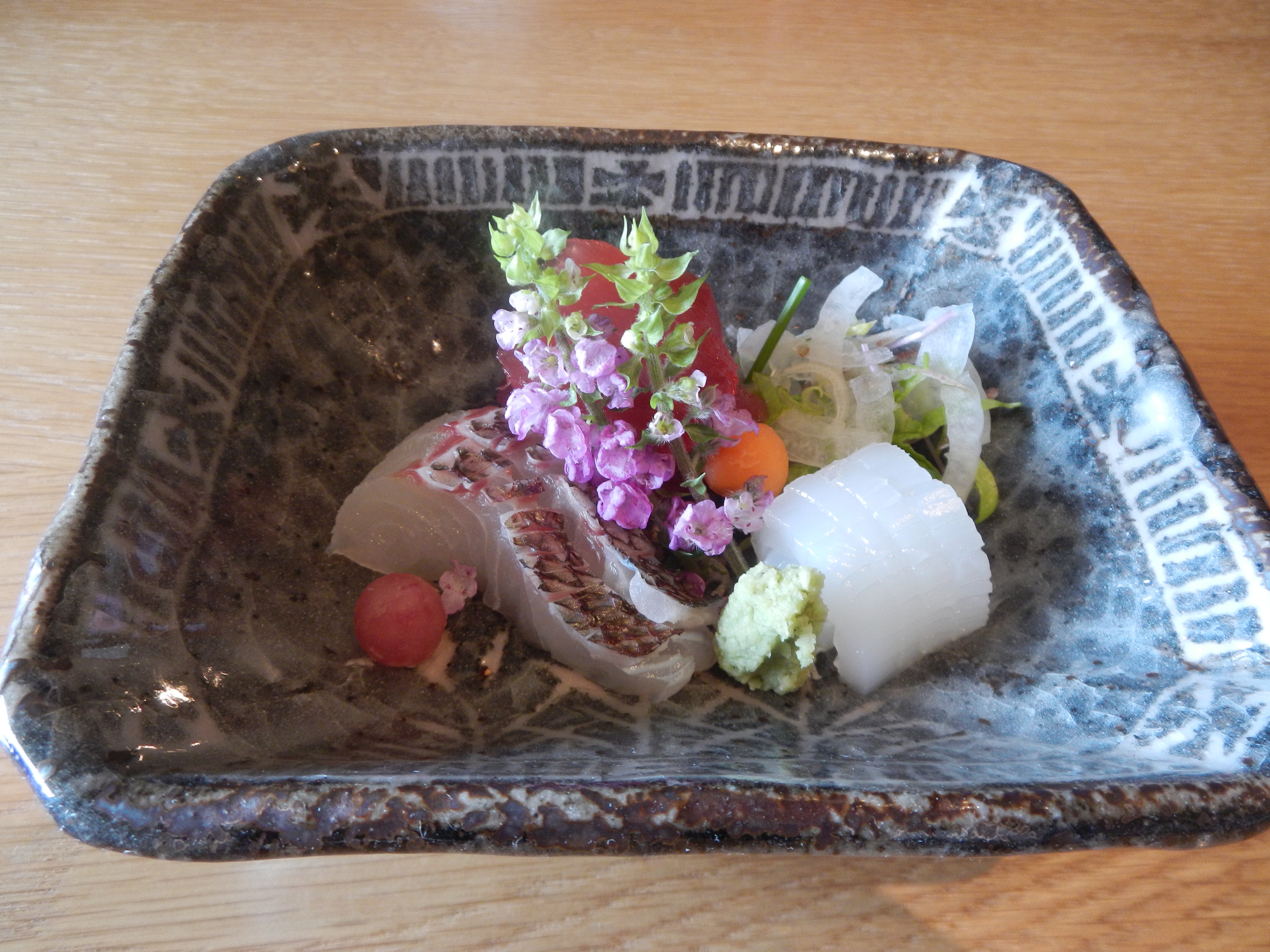 Seasonal Sashimi of Sea Bream, Medium Fatty Tuna, and Squid