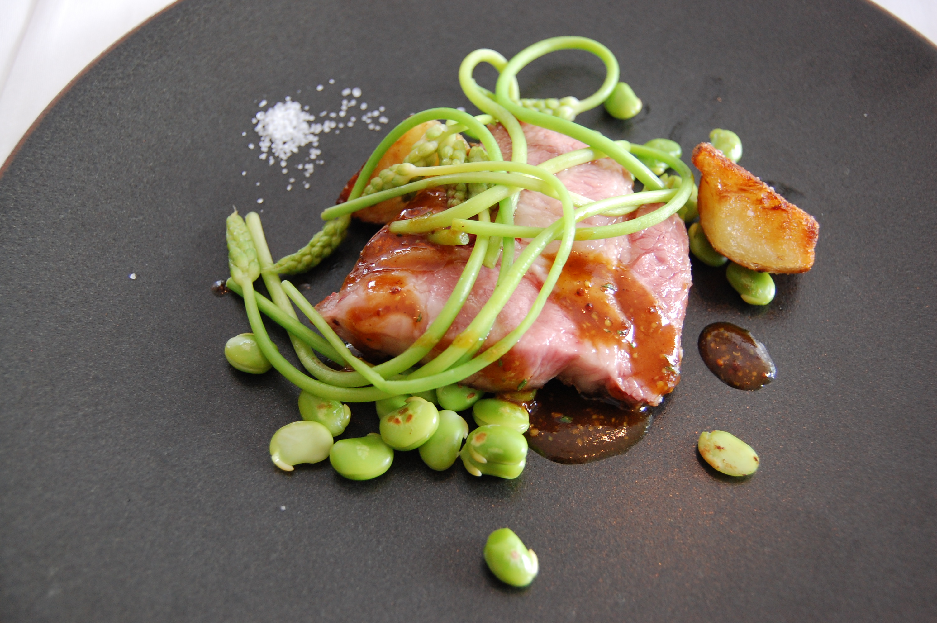 Chef Tacubo excels in pasta and meat dishes. The pasta in this dish was well-seasoned as he seasons it with asari (littleneck clams) jus before plating. It is topped with fresh shirasu (tiny sardines) and karasumi (bottarga roe) and dill. A great fusion dish of East meets West.