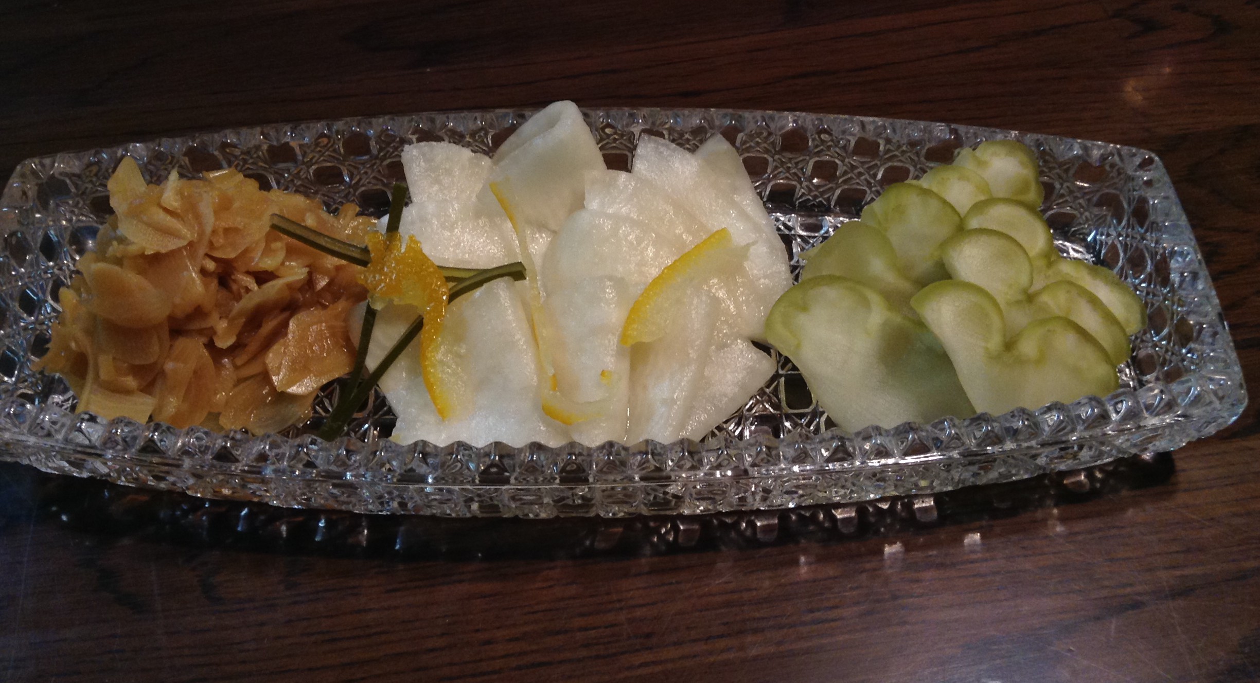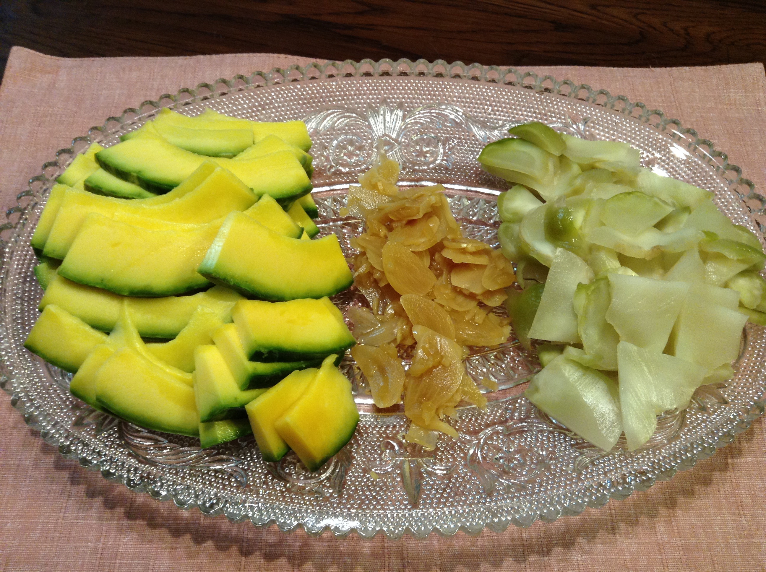 We have tried making kabocha squash pickles at home to no success. The kabocha here has a soft crunch to it and adds a beautiful color to any table.