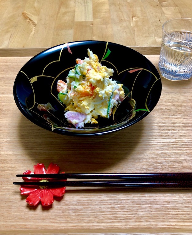 Potato salad is a classic dish found at most izakaya drinking pubs. It’s comfort food and very different from the potato salads I grew up with in Minnesota.