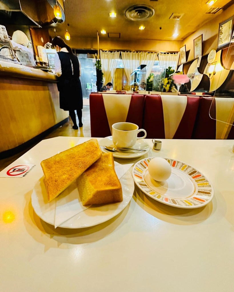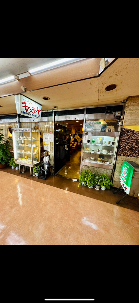 The morning coffee set at Kimuraya kissaten in the Shinbashi Building near Shinbashi station. Thick toast, boiled egg, and coffee for 490 yen ($3.50). I added a salad and was tickled. Fun presentation – and pineapples! I love these retro coffee shops. The music playing was from when I lived in Japan in the 80s and it totally transported me to that time in this setting. The shop opened 37 years ago and it is a total time slip. The kissaten was also very quiet – no one talking.