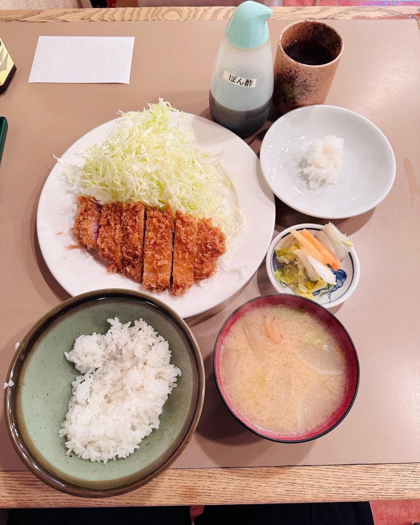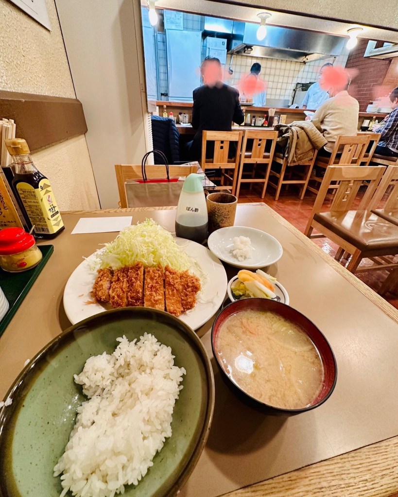 Old school #tonkatsu in a #Ginza basement. Grated daikon and ponzu is recommended by the shop and was delicious. #Tonjiru #miso soup of pork and vegetables.