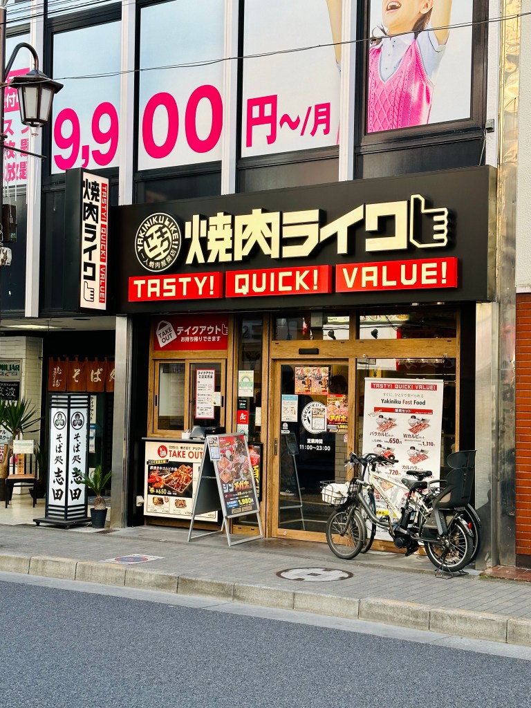 Yakiniku Like’s tagline is Tasty! Quick! Value! It is a chain of yakiniku barbecue with branches throughout Tokyo. Many of the seats are set up for solo diners, each with their own individual barbecues. The set menu includes meat, rice, soup, and kimchi. On the table are five different sauces, grated garlic, and a fun furikake rice sprinkles that reminded me of crushed potato chips.