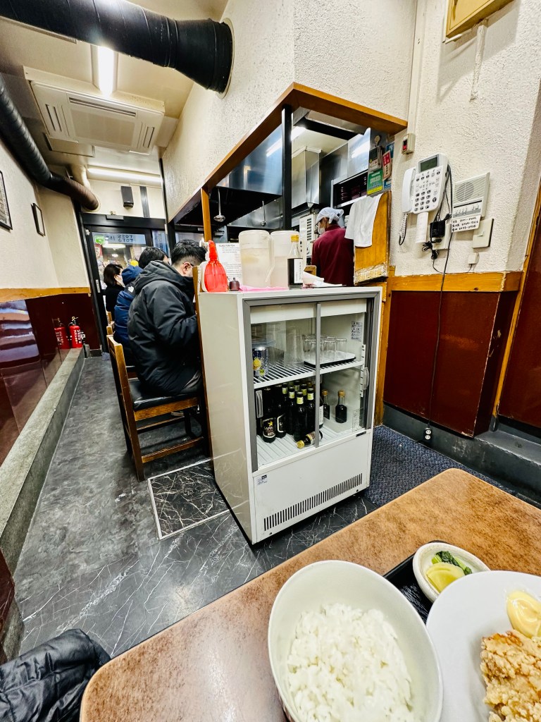 Karaagé, Japanese fried chicken, is irresistible – especially here at Tsukiji Toritoh. Toritoh is a chicken-specialty shop that opened in 1907. The retail shop at Tsukiji is always busy, I assume with yakitori chefs. There are two restaurants. The main restaurant, around the corner for the retail shop, is usually packed, but it was a rare Wednesday that Tsukiji Market was open that I could visit and have a seat in the back of the restaurant. The counter seats overlook the open kitchen.