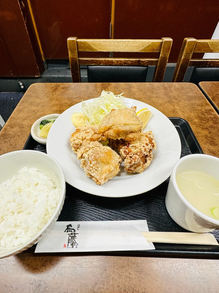 Karaagé is boneless pieces of chicken marinated, usually in soy sauce and saké with some grated ginger. It is then dusted in potato starch and deep-fried. And it’s for breakfast! Toritoh is also famous for its oyakodon – mother and child chicken and soft cooked eggs over rice donburi.