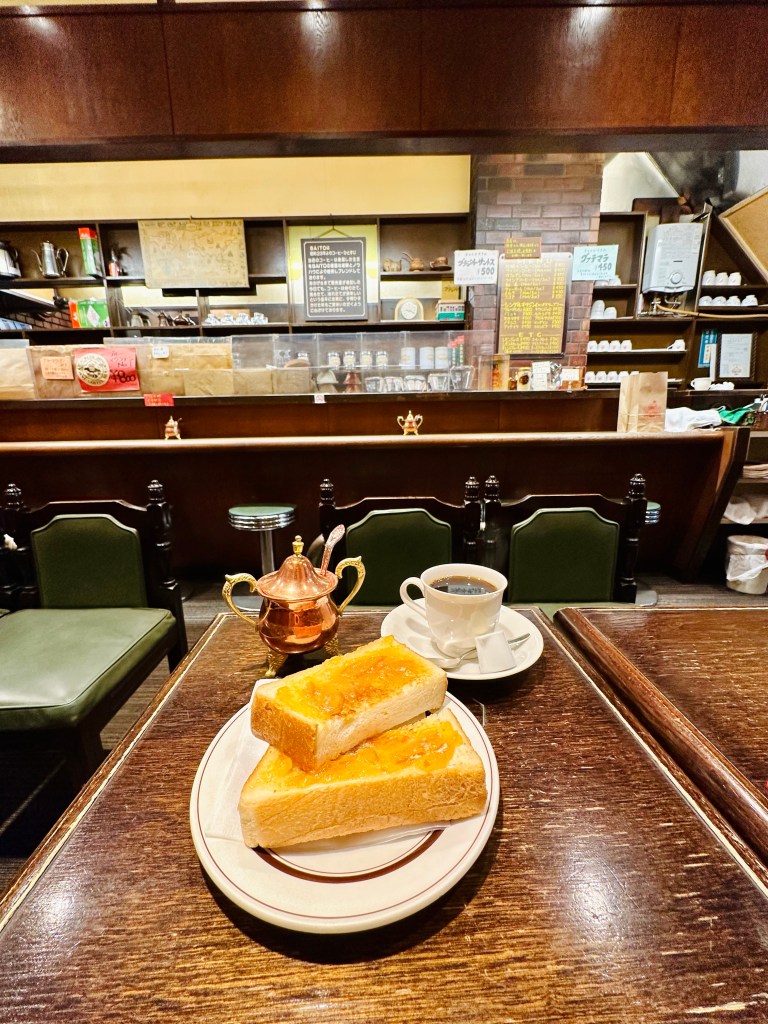 To sit down inside away from the cold wind the coffee was only 350 yen ($2.50). I asked if there was a morning service and was offered a slice of toast for 100 yen (75 cents). Was offered the option of margarine, strawberry jam, or orange marmalade. Love old school kissaten. Sit down with a book or a notebook. Classical music in the background. Enjoy a handmade cup of coffee and light breakfast for $3.25 and no tipping in Japan!