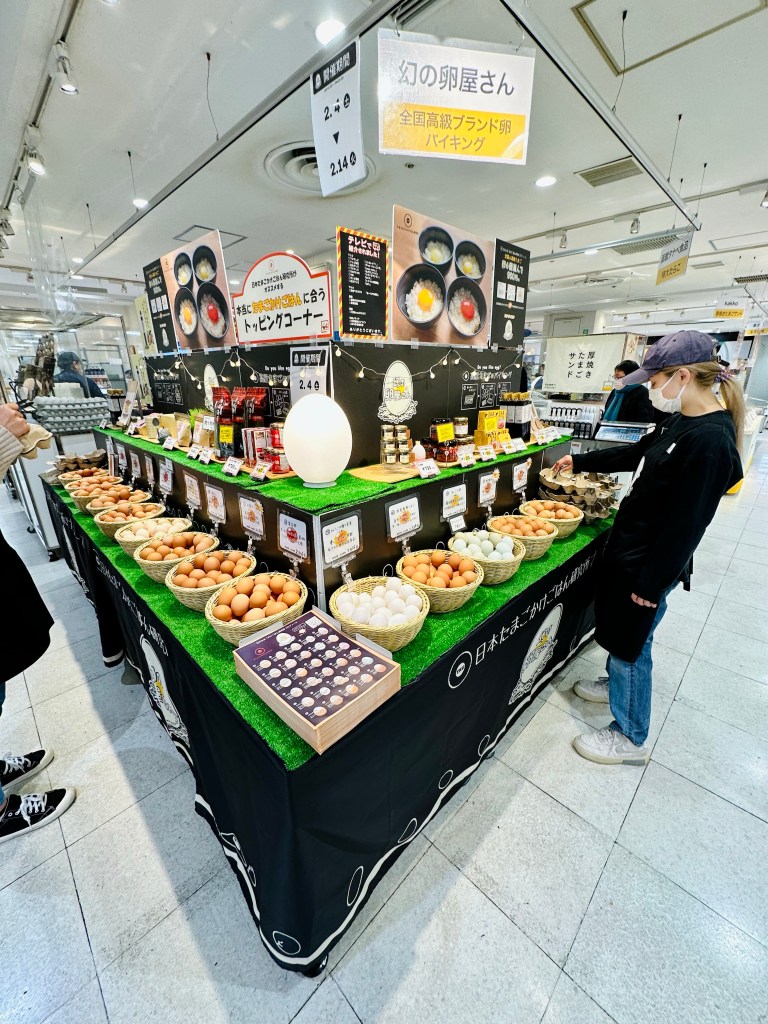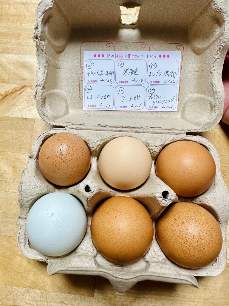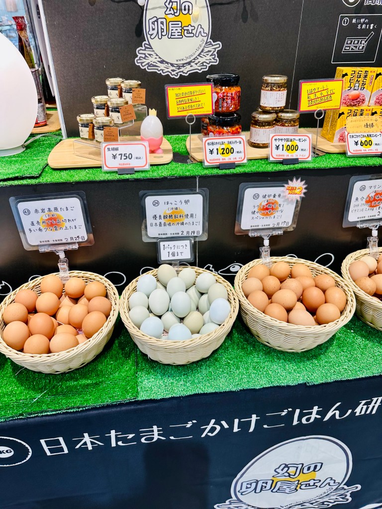 At Ginza Matsuya there was a pop-up of gourmet eggs for TKG. Japan Tamago Kake Gohan Lab has a selection with tasting notes for each egg. Six eggs for 900 yen ($6.80). The staff kindly selected for me a variety and wrote down the names of the eggs on a chart for the box.