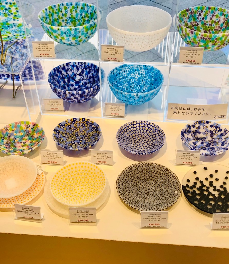 The colorful Murano glassware is stunning in person. It was hard to pick one. My birthday gift for myself. Here with Park Hyatt Tokyo chocolates and aged saké.
