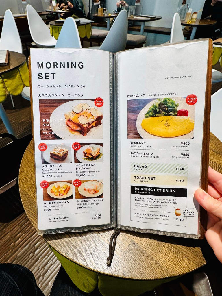 bread, espresso & is an excellent bakery with several branches including Omotesando and this café in Shibuya at Miyashita Park on the second floor. Breakfast morning set here includes cheesy toasts, including one with truffles, or this cheese omelet with salad.