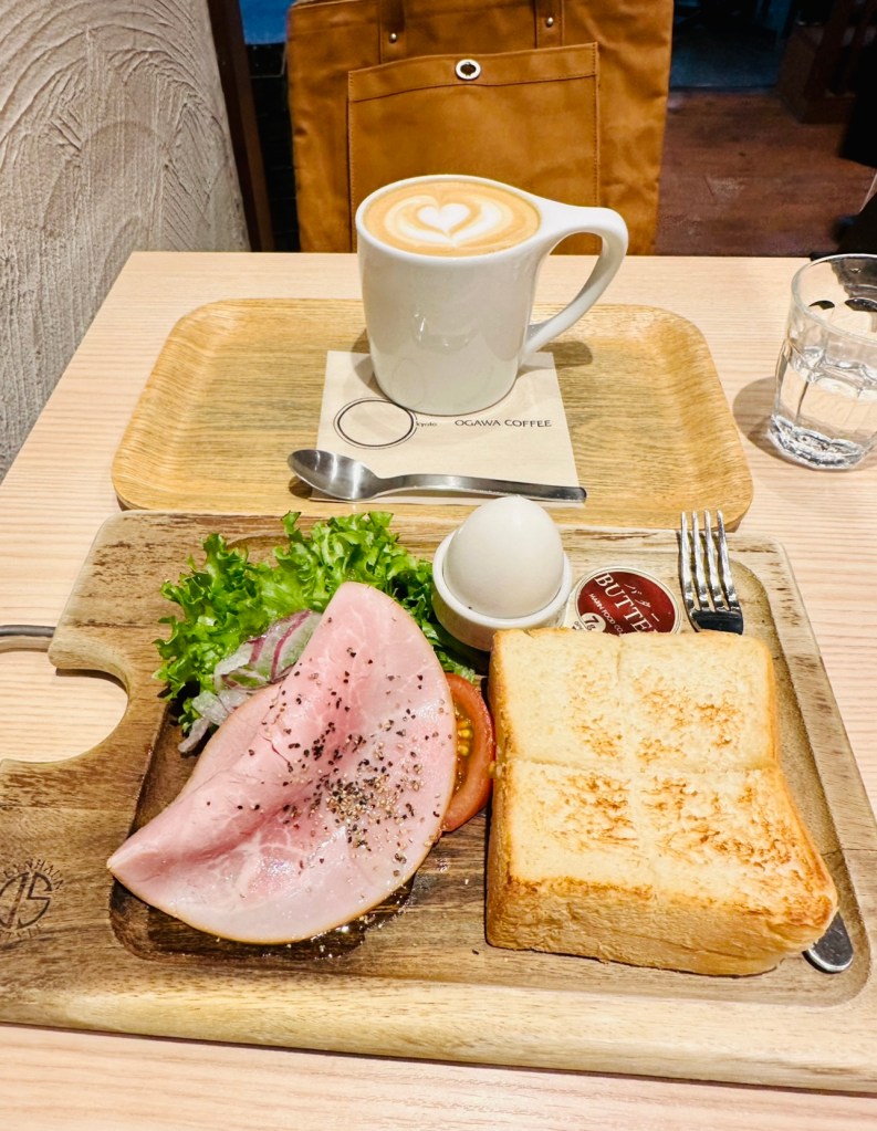 The morning toast set at Ogawa kissaten in Kyoto. This branch is located just across the street from Kyoto Station on the north side.