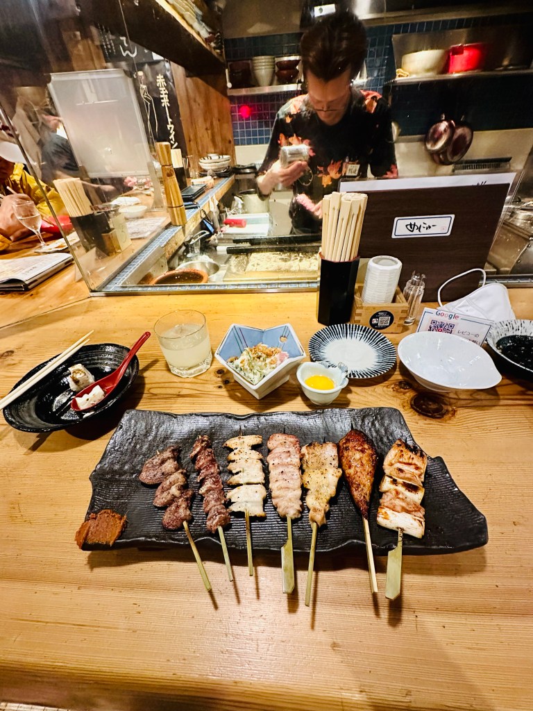Tsujiya yakitori near Kyoto Station. I enjoyed sitting at the counter watching the skewers and yaki onigiri being grilled over charcoal.