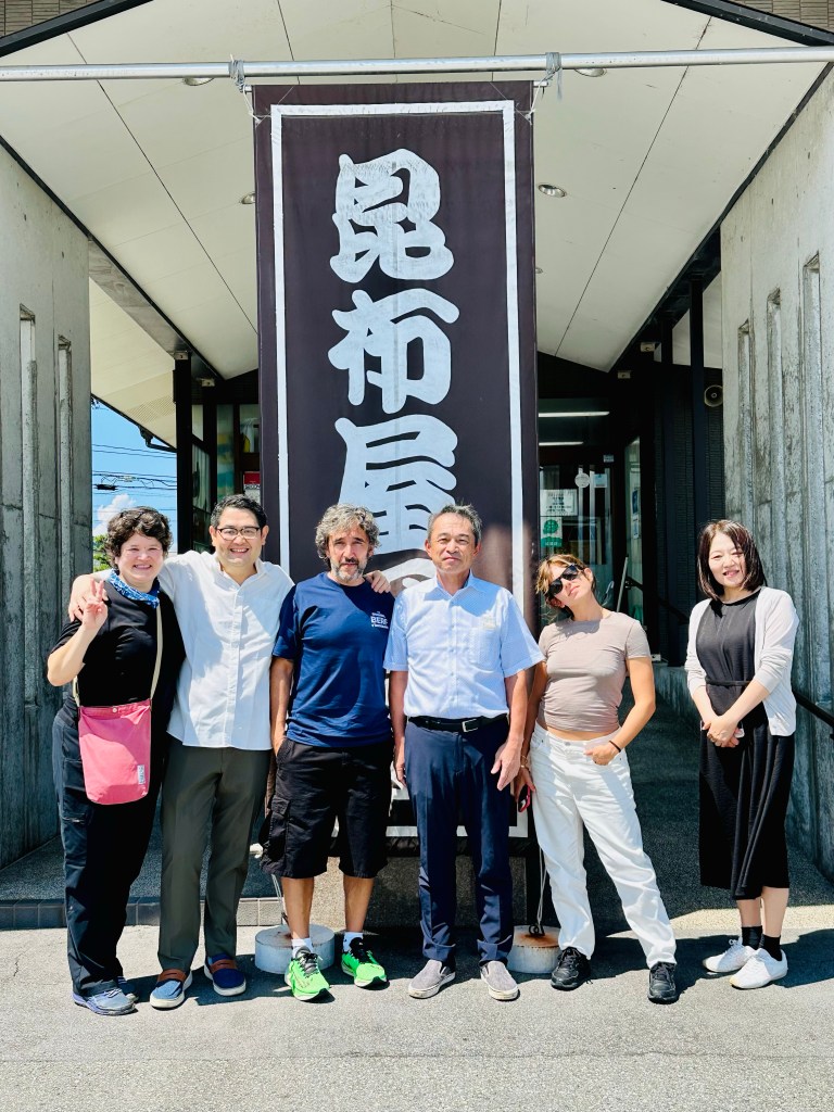 On our visit to Kurobe city in Toyama we had the great pleasure to visit Aimono Kombu. Kombu kelp is a sea vegetable rich in natural umami called glutamates. It is essential for making dashi stock which is used in many Japanese dishes. Most kombu is harvested in Hokkaido. In the Edo to Meiji periods (1603-1912) there was a famous shipping route called the Kitamae-bune that traveled from Hokkaido through the Sea of Japan to the ports in Toyama, Shimonoseki, and through to Osaka. As a result local cuisine in Toyama includes kombu and the prefecture is one of the top consumers of kombu in Japan.