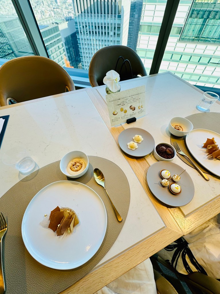 Service is exquisite. Our seats overlooked the financial district with Tokyo Sky Tree off in the distance.