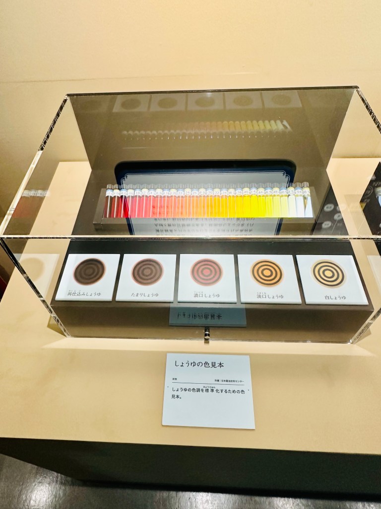 Zōni, rice porridge, changes in each region and there is a lovely display showing how different the porridge is throughout Japan. A diagram shows how rice and soybeans are used to make a variety of products including tofu, nattō, yuba, soy sauce, miso, sake, sushi, mochi, and so much more. Fascinating to see the different hues of soy sauce.