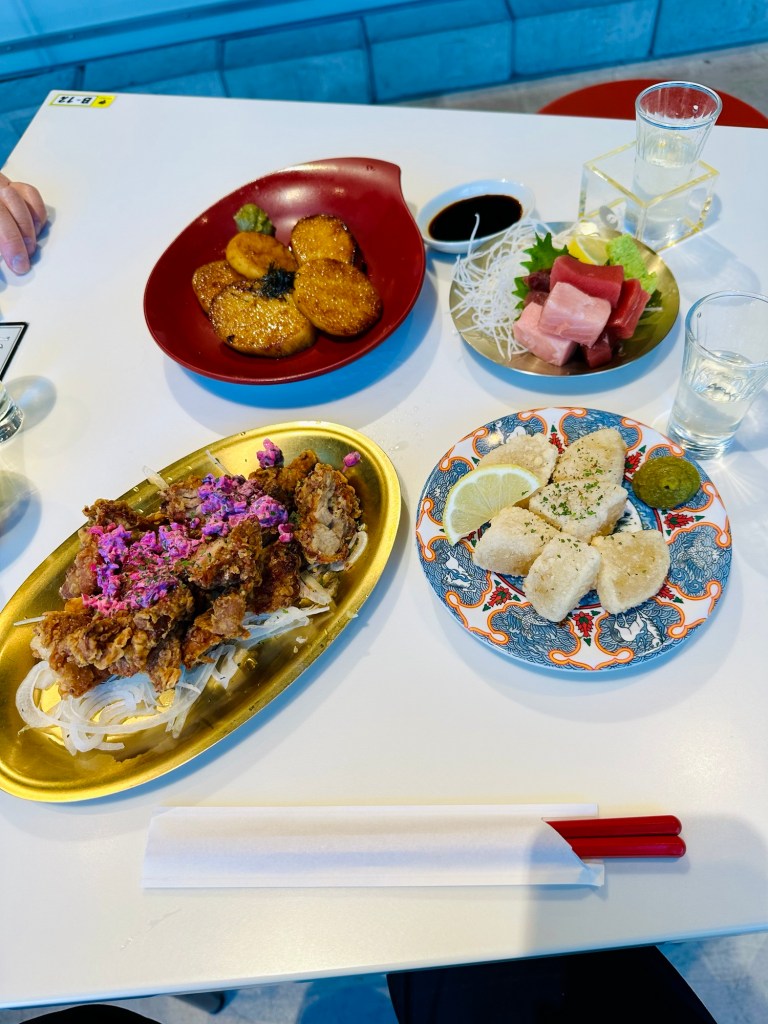 Tachigui Sakaba Kinjishi is a cool spot near Tokyo Station for nihonshu by the glass and saké-friendly small bites. An excellent selection of saké including @jikon_sake, @matsunotsukasa_official, @izumibashi_official, and @niidahonke. We loved the karaagé, and tempura of simmered daikon and cream cheese (both good), nagaimo potatoes, and tuna sashimi.