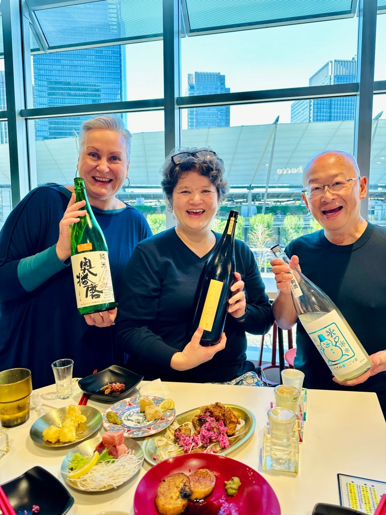 The saké was poured into glasses which were in clear acrylic boxes. A fantastic presentation. Staff are friendly. Our seats overlooked Tokyo Station.