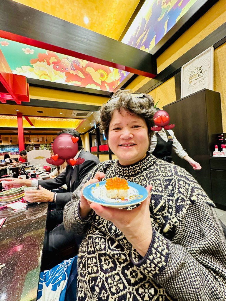There are a few branches in the city. There’s a branch in the Kanazawa Station but that branch is not conveyor belt – and has long lines. We tried jumping in a taxi to the Shin Kanda branch which was perfect. No lines and all locals. The interior is bright and there’s a high ceiling.