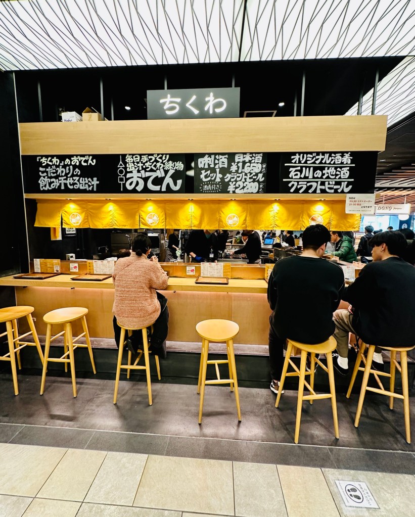Chikuwa is a casual stand inside of Kanazawa Station that diners can enjoy craft beer and oden. We grabbed just a few items as we had a shinkansen bullet train back to Tokyo to catch. The signature chikuwa grilled fish cake, boiled egg, and kuruma bu wheat gluten was all delicious. We tried to go the day before but there was a long line.