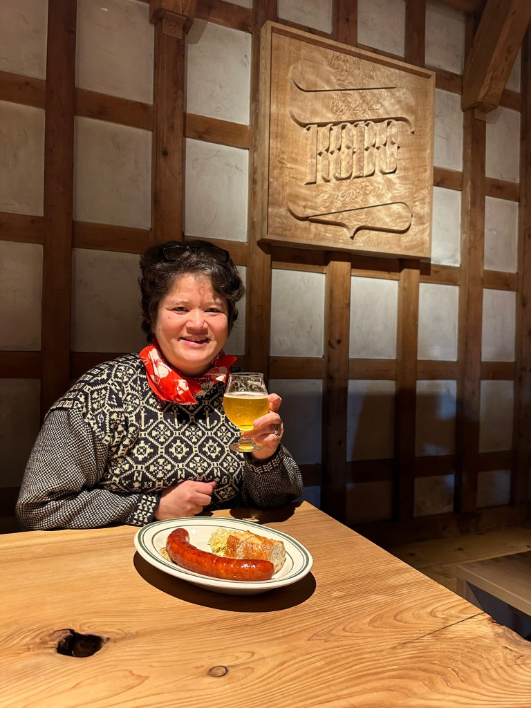 Kobo Brewery is family friendly and on this day there was a nice mix of diners from all over including a family from Australia. Staff here are friendly and the food and beer are all delicious. The big sausage on the menu is the family recipe from Boris.