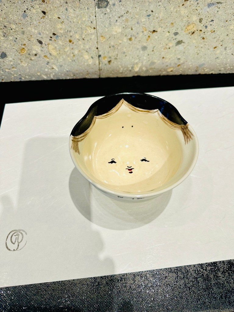 The sweet is paired with a bowl of slightly bitter matcha. We were told that the fun matcha bowl with the face inside is used in January through Setsubun, February 3rd. The master saw us trying to take a photo of the bowl and kindly rinsed and dried one for us. This is an example of omotenashi hospitality. So thoughtful!