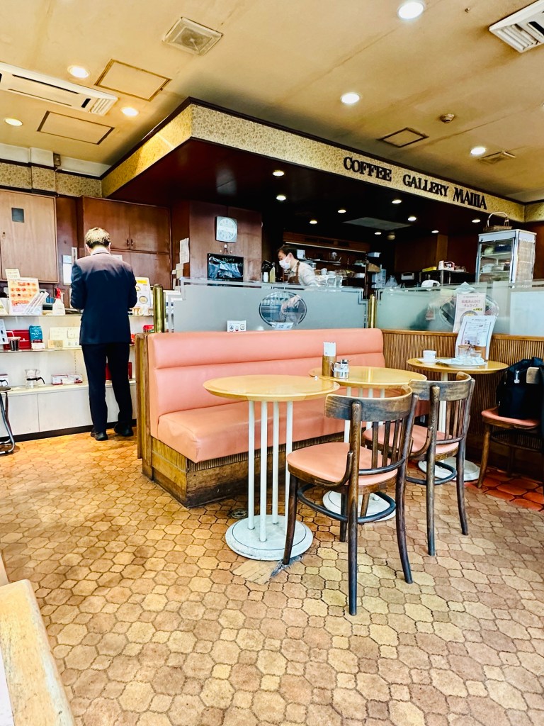 Cool, quiet kissaten Maasha offers this bargain morning set for a ridiculous ¥450 ($3). Only a few of us sipping coffee. In reading a sports newspaper, one on his phone, the third tapping away at his laptop. The only distraction is when a hit from the 80s comes on and I stop writing so I can sing in my head. Lionel Richie, Phil Collins, and the B-52s all transport me from Tokyo back to Minnesota.