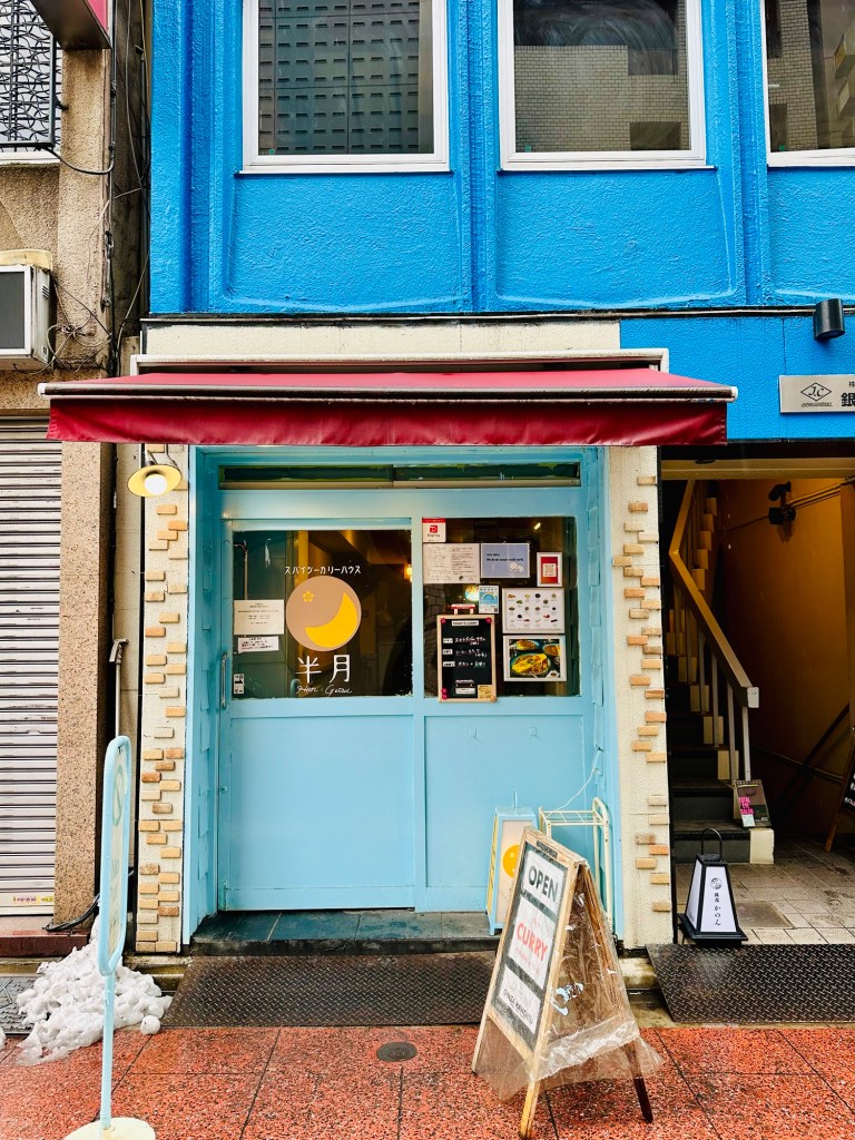 Ginza Hangetsu double curry 🍛 of coffee pork and ginger chicken with turmeric rice. Perfumed with fresh spices. Sliver of a shop on a quiet Ginza backstreet. Friendly staff and an English menu. Excellent value at ¥1,200 ($8).