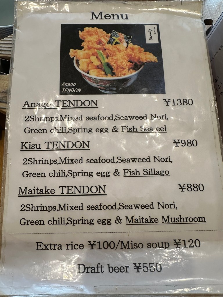 Fabulous tempura lunch in Kichijōji at Kanekoya. Went at 10:45 a.m. and there was already a line in front of the shop. The restaurant opens at 11:00 a.m. and we were lucky to get in at the first seating. When we left the queue was looong.