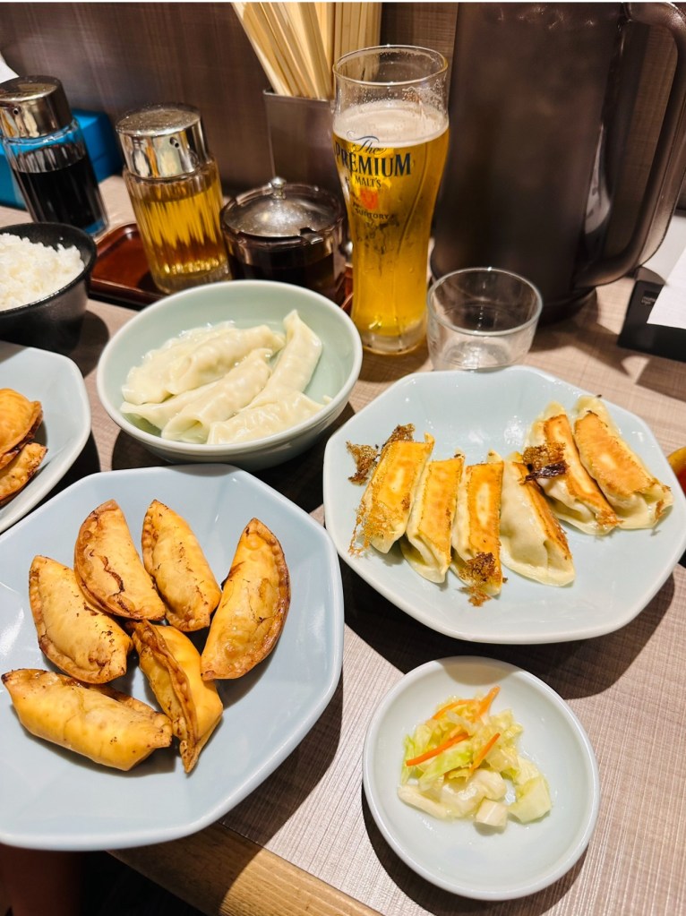 There are two shops, next door to each other. Minmin Mets serves three types of gyoza: regular, deep-fried, and boiled. The Minmin Station Building shop serves only regular and boiled.