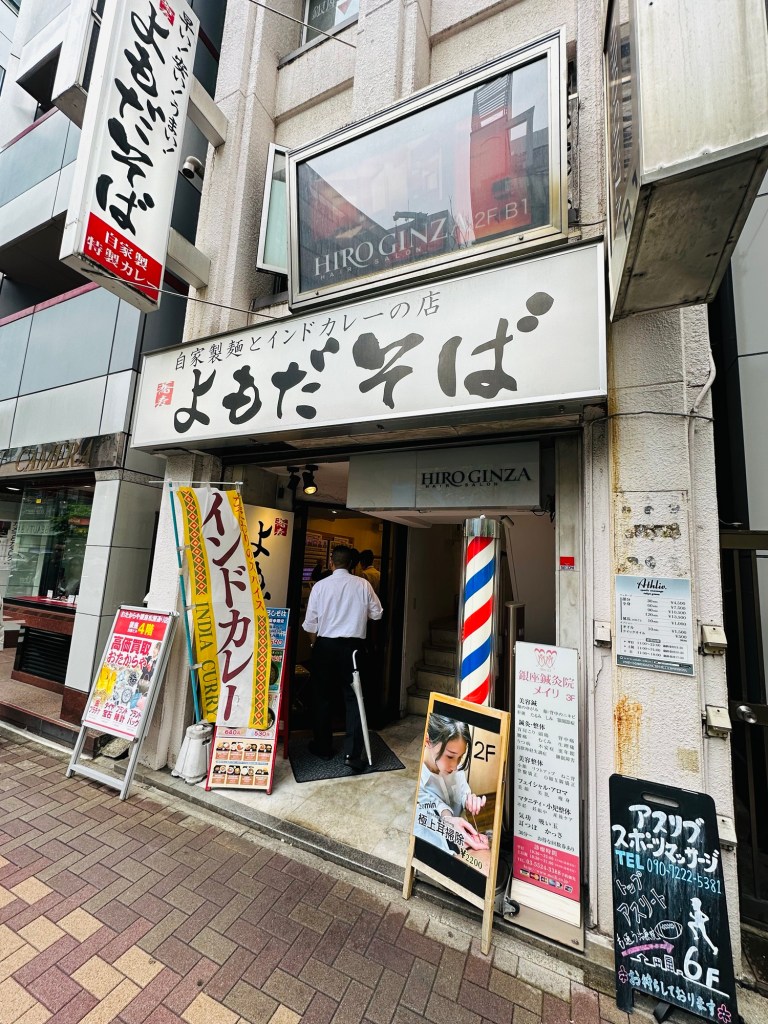 On this afternoon the music playing was from the 50s. Some song about tan shoes with pink shoe laces. Sharply at noon a queue formed with a mix of salarymen and construction workers. Yomoda is a quick and satisfying meal. The Ginza branch has seats, but some of the other branches are tachigui stand-and-slurp. Yomoda Soba usually is open from early in the morning, around 7:00 a.m.