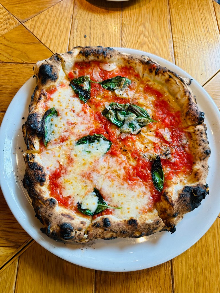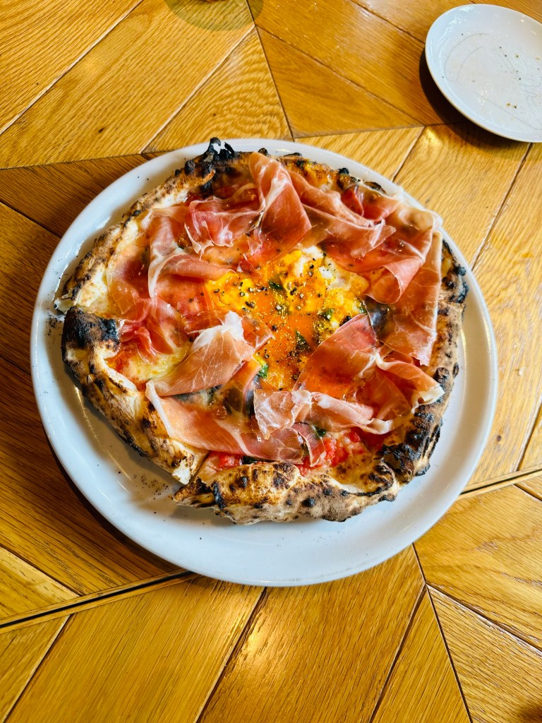 Marinara, Margherita, and Bismarck with ham and an egg.