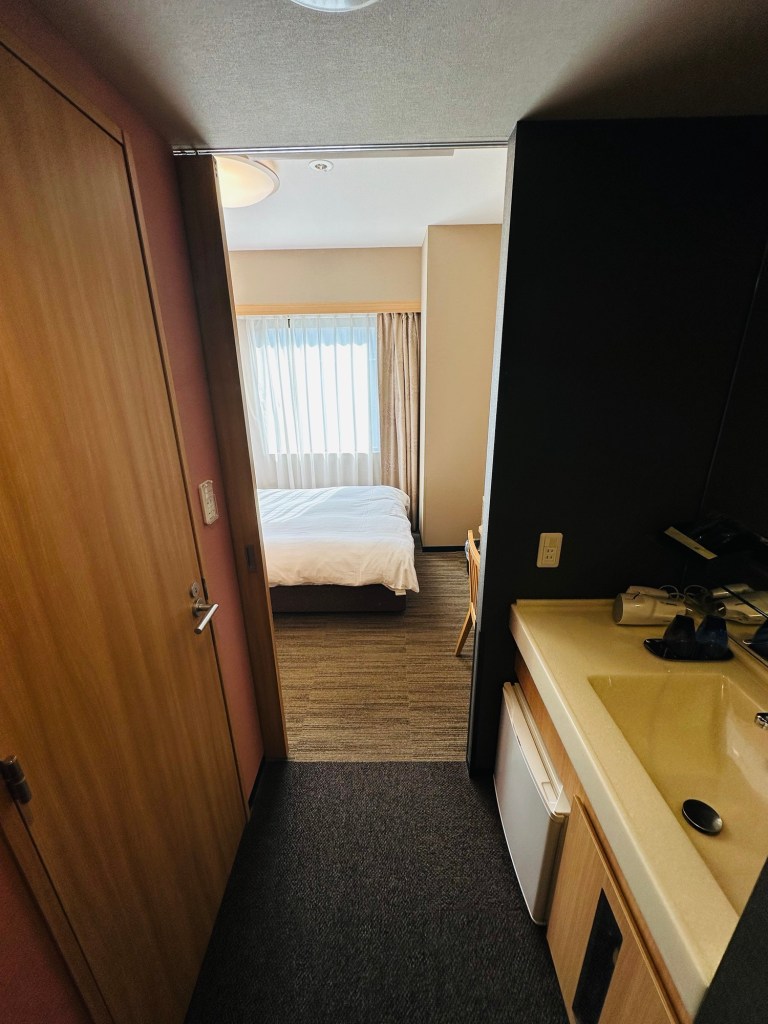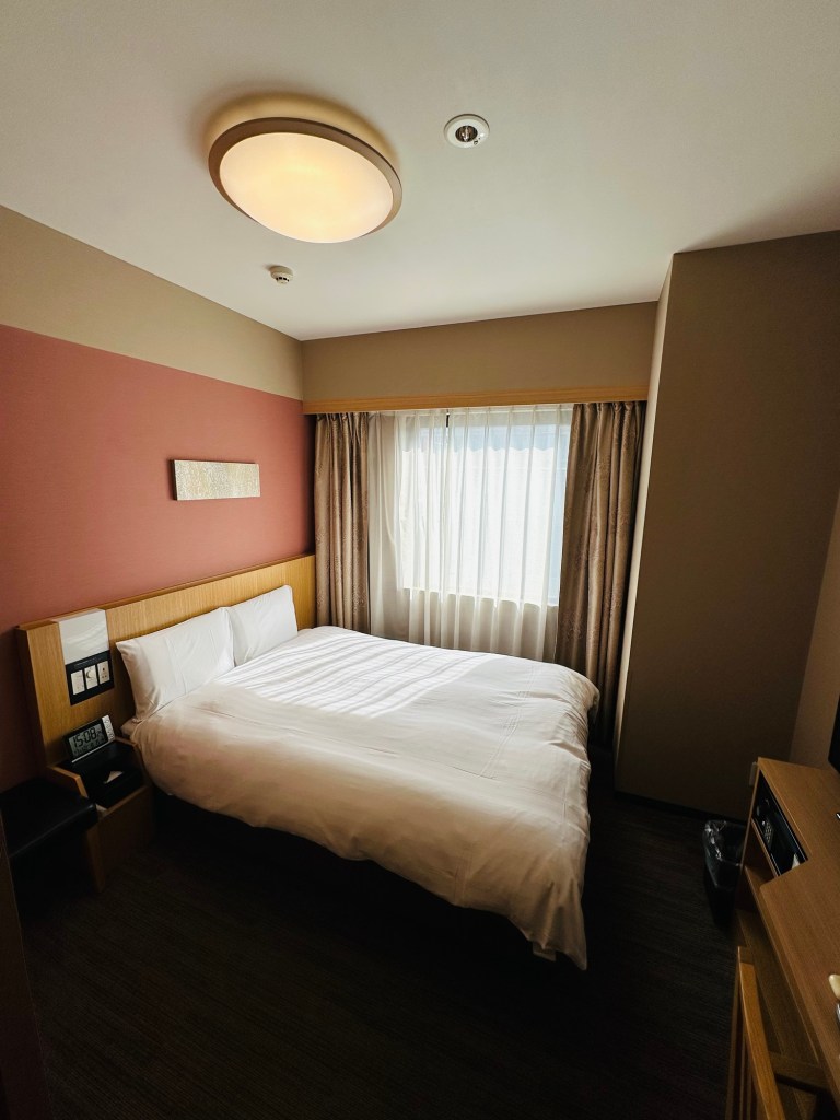 If you’re on a budget in Japan 🇯🇵 on holidays check out the Dormy Inn chain. This simple room was less than $100. The basic room is small, but you’re in Tokyo, so most likely are only in the room to sleep and recharge.